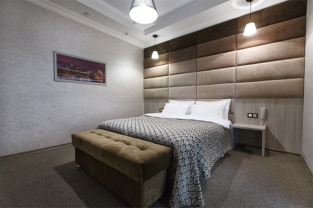 Номер с большой двуспальной кроватью категории "Превосходный". В номере удачно сочетаются классический дизайн и домашний уют, что позволяет гостям насладиться пребыванием в нашем отеле. Площадь номера 28 м2. Удачное зонирование создает зону отдыха с диваном и рабочую зону с большим столом и удобным стулом. В номере: беспроводной интернет, холодильник, кондиционер, телефон, кабельное TV, мини-бар, сейф, душевая кабина, фен, тапочки и набор для приготовления кофе/чая. Курение в номере запрещено.Услуги и удобства