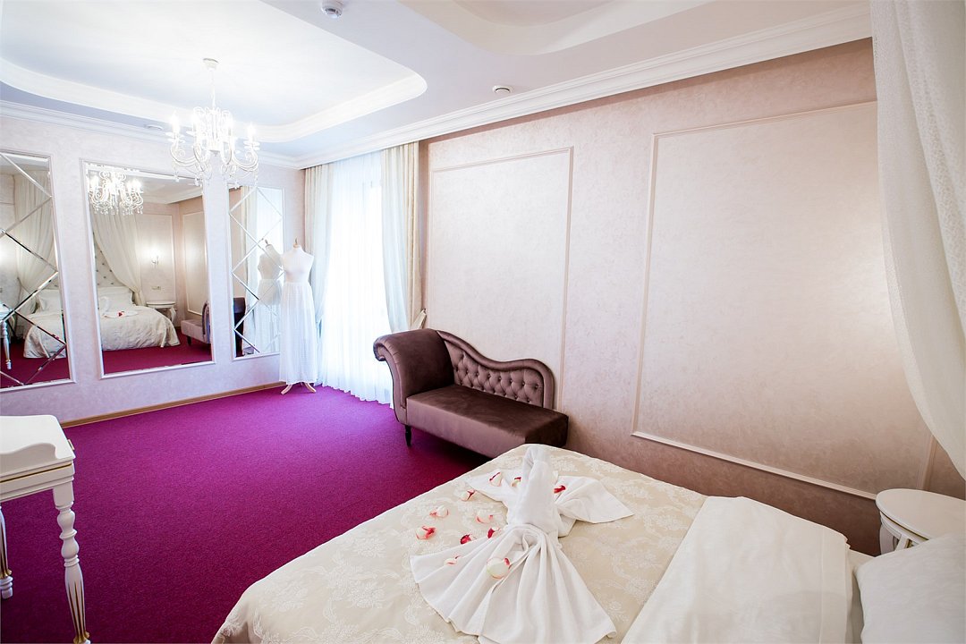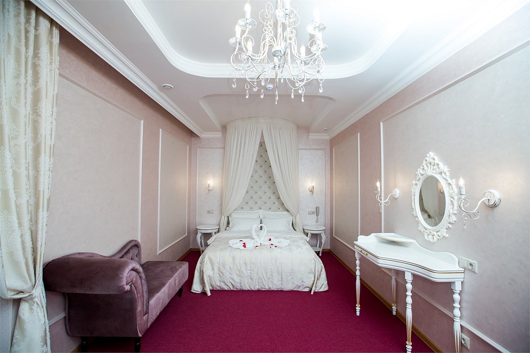 Шикарный просторный двухкомнатный номер категории "Romantic" идеально подходит для новобрачных и влюбленных. Одна из комнат в номере в благородных синих тонах с зоной отдыха, а вторая - светлая спальня в нежном цвете, с роскошной большой двухспальной кроватью и балдахином. Площадь - 57 м2. В номере: беспроводной интернет, холодильник, элитная климат-система кондиционирования, телефон, кабельное TV, мини-бар, набор для приготовления чая и кофе, сейф, угловая большая ванная, фен, тапочки, халат, набор мини-парфюмерии. Курение в номере запрещено.Услуги и удобства