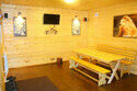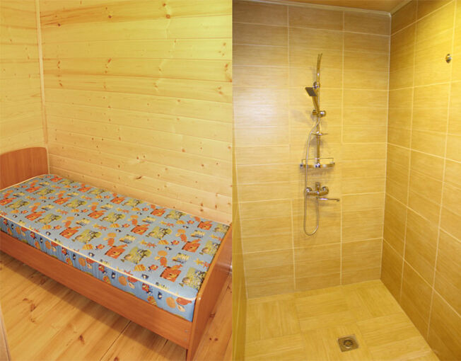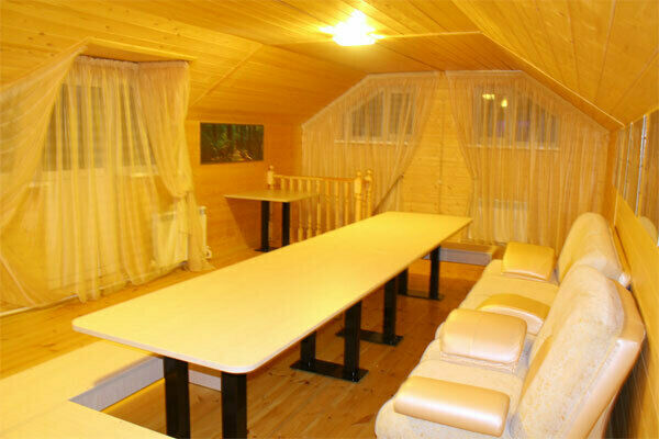 Баня с душевой, комнатой отдыха на 8-10 человек, спальня с односпальной кроватью, в прихожей тапочки на 25 человек (тапочки ежедневно стерелизуются), кухня. Во дворе бани для любителей барбекю и шашлыка имеется мангал.