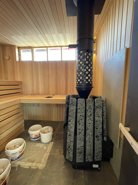 Японская баня с уникальной каменкой от Grill`d рассчитана на 8 парильщиков, с парильным отделением, помывочной, туалетом и гостиной.