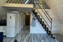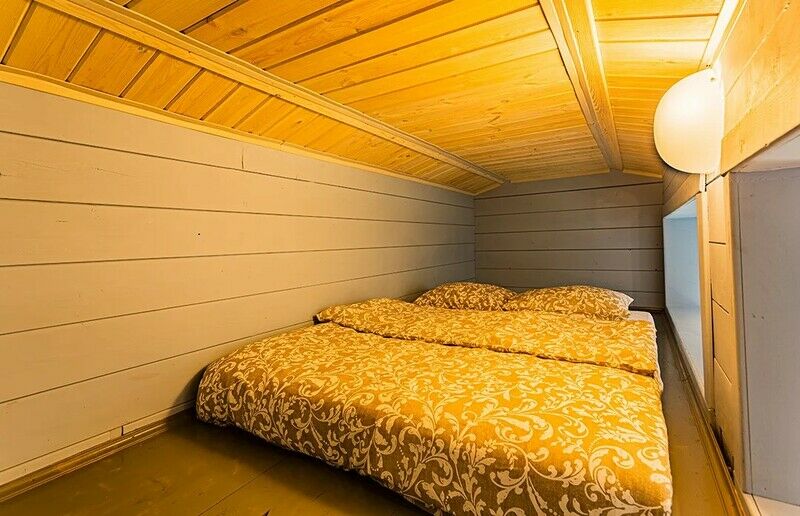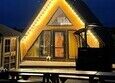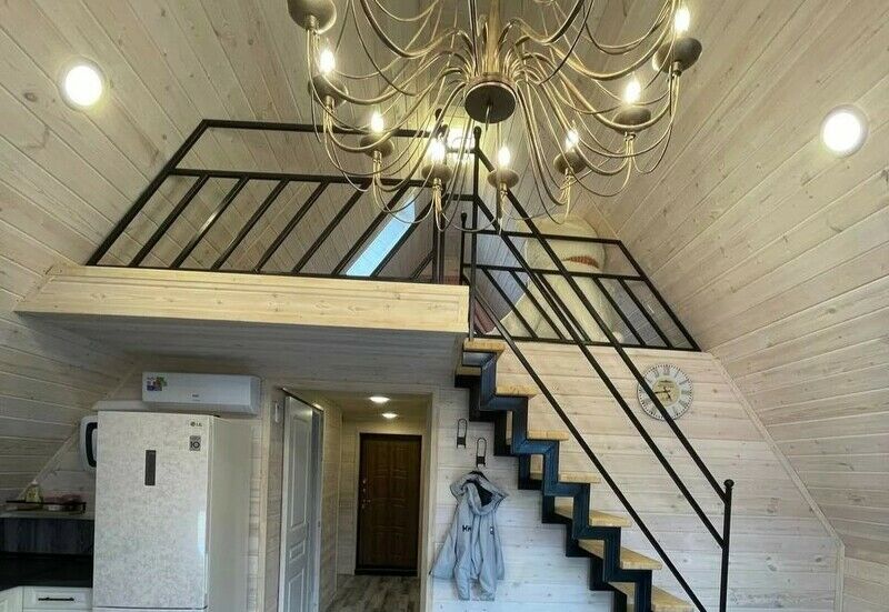 80 кв.м., гостиная с кухней, спальня первого этажа, ванная комната и спальня второго этажа, кухня, посуда, на улице зона для барбекю