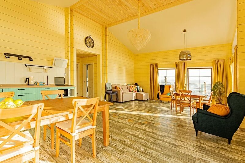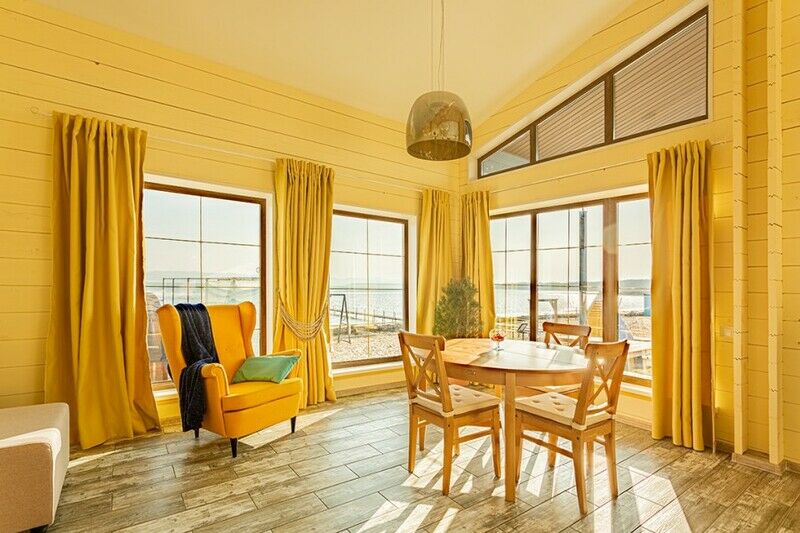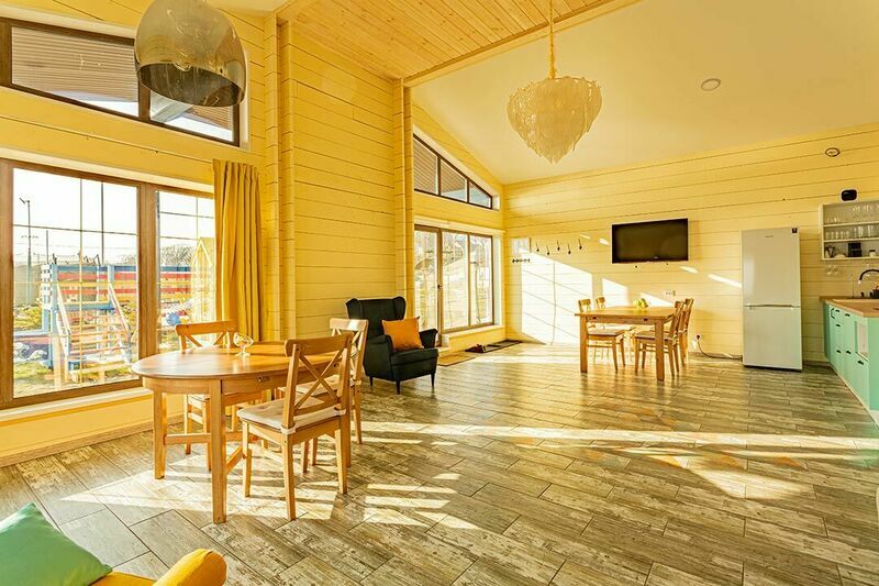 В номере имеется все необходимое для приятного отдыха, а также есть Wi-Fi, телевизор с цифровым телевидением. На своей ухоженной и красивой территории есть терраса и качели, кроме этого установлены беседки для отдыха. Отель находится на первой береговой линии, поэтому до пляжа совсем недалеко. Гости могу посетить баню и бассейн, либо караоке. Для детей в отеле оборудованы интересная детская площадка и батут.