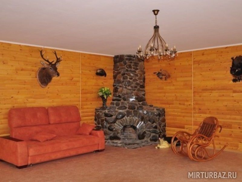 К услугам клиентов имеется деревянный домик, построенный из древесины хвойных пород. В доме имеется кухня, туалет, три комнаты и камин. В нём могут расположиться шесть человек. В доме есть телевизор с кабельным телевидением! Имеется печь - отапливать можно самостоятельно, либо рабочими. Для посиделок компания может устроиться в гостиной. Здесь же оборудована кухня. Во дворе стоит столик и мангал для проведения пикника.