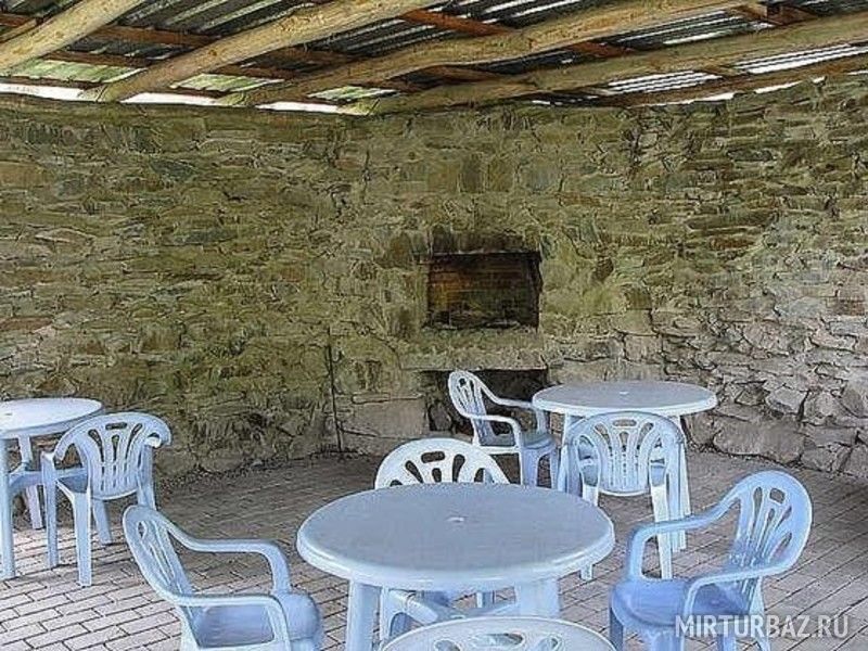 Отдыхающие размещаются в благоустроенном двухэтажном кирпичном доме. В нём могут разместиться 17-20 человек. На первом этаже расположен большой каминный зал - стол большой, лавки, мягкая мебель, диван кресла, огромный телевизор и кабельное телевидение, караоке, прихожая; кухня - кухонный гарнитур, плита, стол, холодильник, микроволка, чайник, посуда; санузел (туалет, душ,горячая холодная вода). Второй этаж: восемь спальных комнат, в каждой из которых двуспальная кровать; сан.узел(душевая кабина, туалет). прихожей, туалета, кухни, двух спален и общего зала. Возле домика имеется место для отдыха, большая каменная беседка - стол, стулья, мангал.