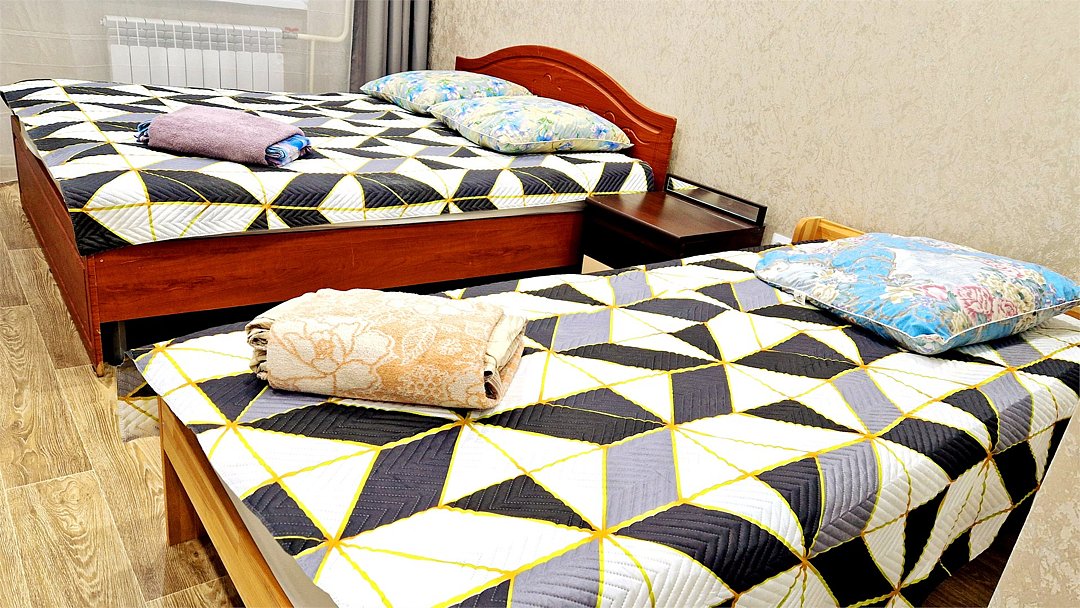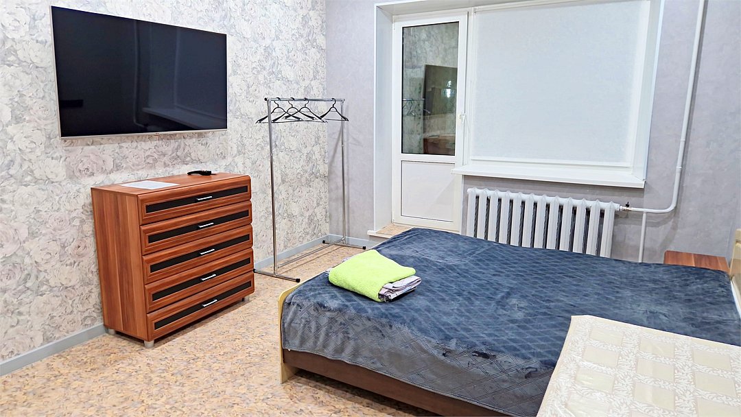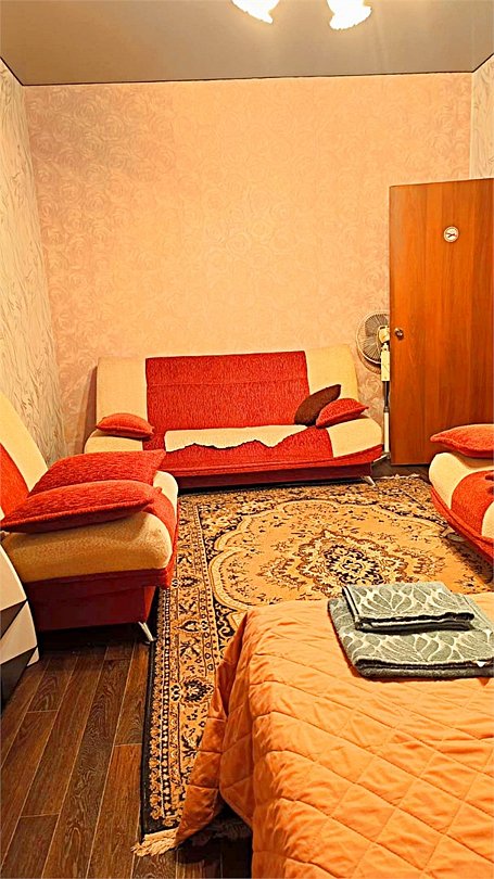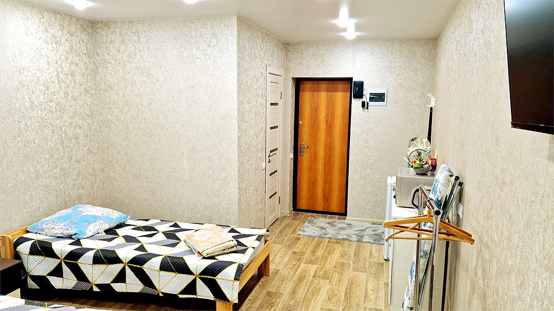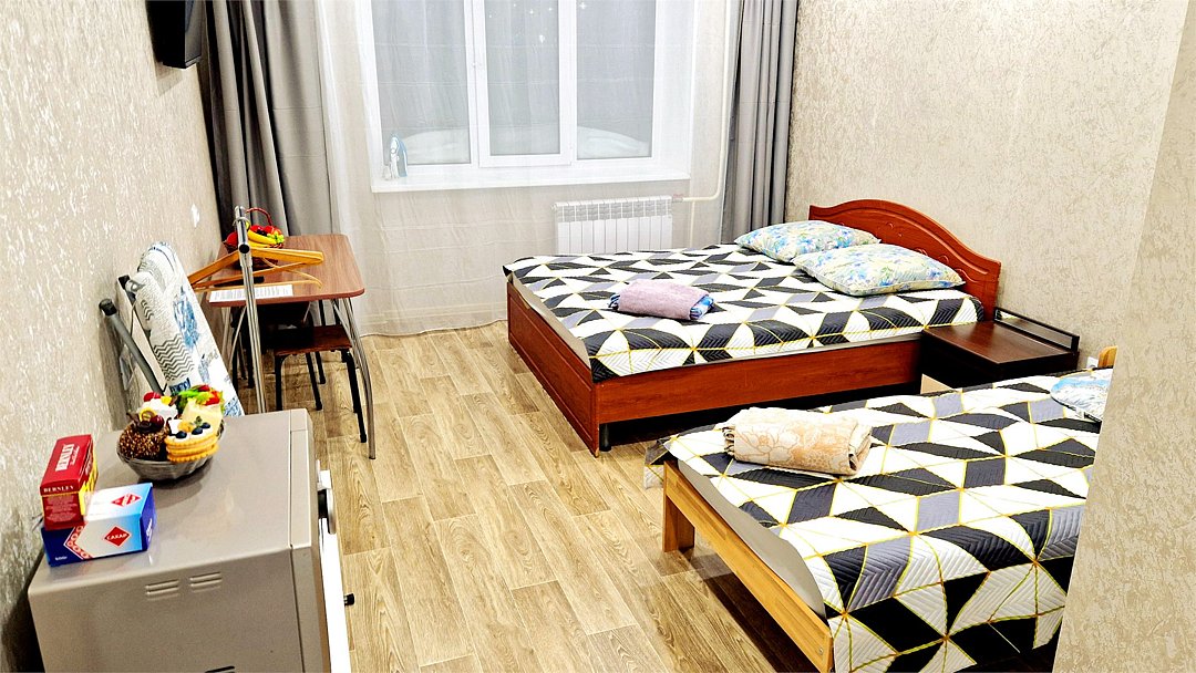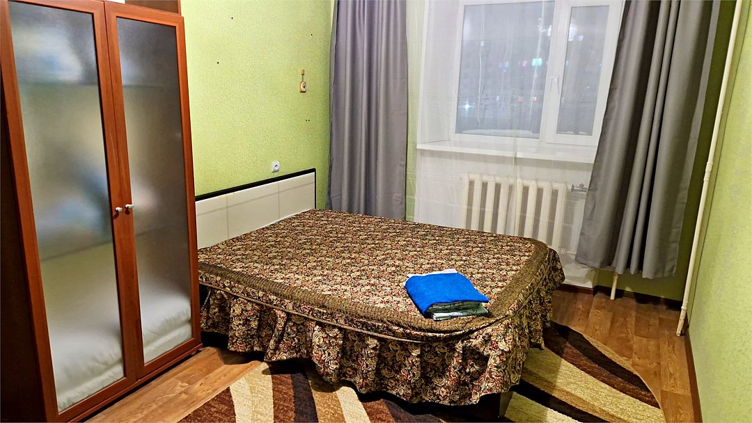 •Находится в ближайшем к аэропорту жилом районе, в 10 минутах ходьбы до центра города. • Остановки, магазины, кафе в шаговой доступности. Удобная транспортная доступность. Много парковочных мест во дворе. В непосредственной близости есть возможность стоянки грузового автотранспорта. • Укомплектован: двуспальной и полутороспальными кроватями, комодами для одежды, напольной вешалкой с плечиками, Телевизорами, Цифровым ТВ, WiFi, Пуховыми подушками, Одеялами, Хлопковым постельным бельем и махровыми банными полотенцами, Утюгом, Феном, Микроволновкой, Чайником, Посудой и другими кухонными принадлежностями, Мылом, Шампунем, Моющим для посуды, Чаем, Сахаром.Услуги и удобства