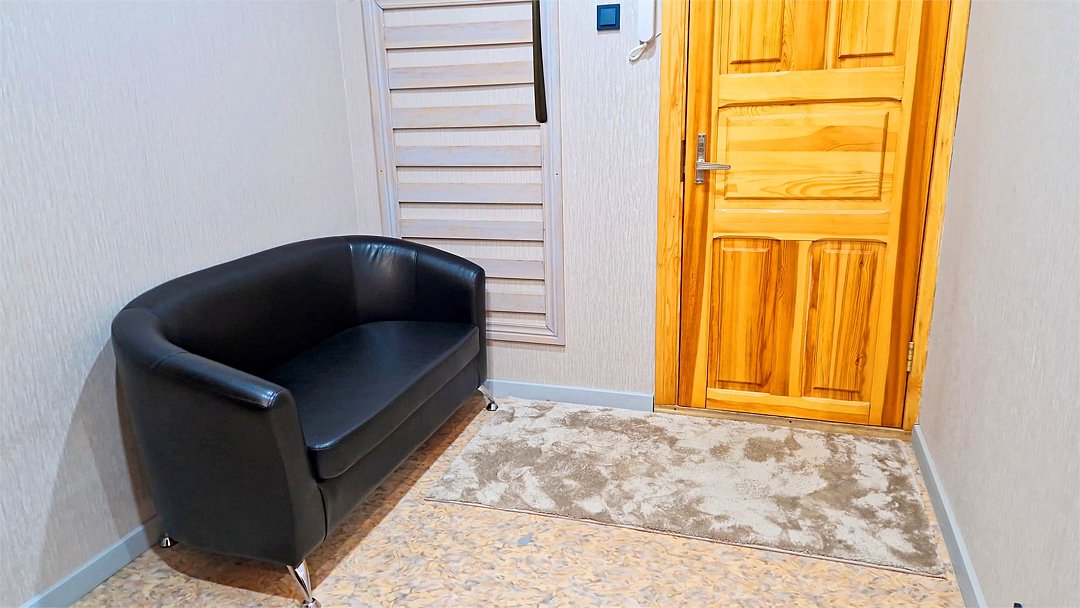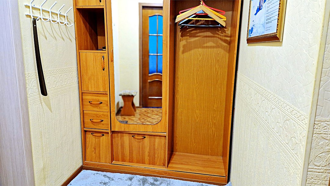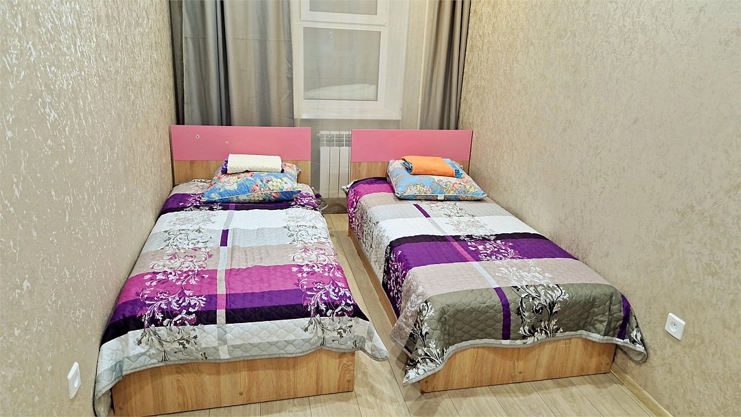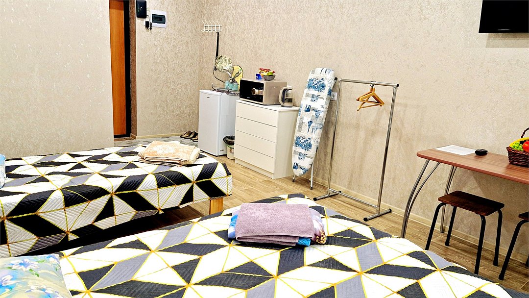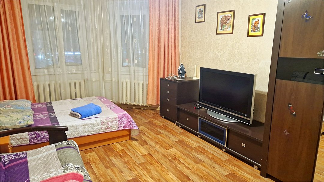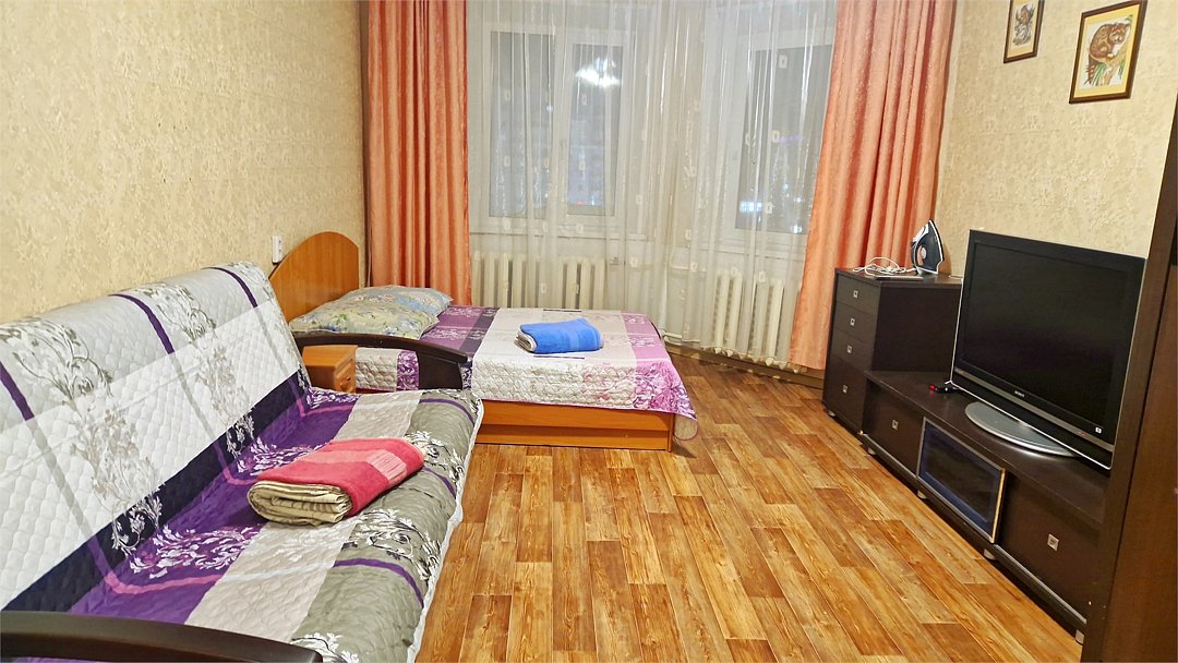 •Находится в ближайшем к аэропорту жилом районе, в 10 минутах ходьбы до центра города. • Остановки, магазины, кафе в шаговой доступности. Удобная транспортная доступность. Много парковочных мест во дворе. В непосредственной близости есть возможность стоянки грузового автотранспорта. • Укомплектован: двуспальной и полутороспальными кроватями, комодами для одежды, напольной вешалкой с плечиками, Телевизорами, Цифровым ТВ, WiFi, Пуховыми подушками, Одеялами, Хлопковым постельным бельем и махровыми банными полотенцами, Утюгом, Феном, Микроволновкой, Чайником, Посудой и другими кухонными принадлежностями, Мылом, Шампунем, Моющим для посуды, Чаем, Сахаром.Услуги и удобства
