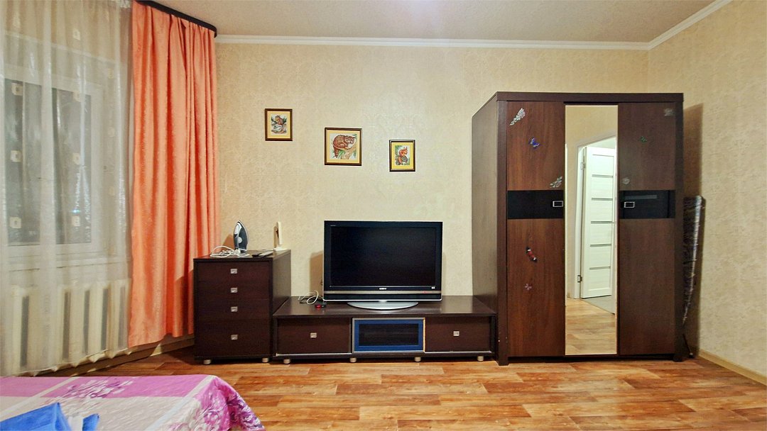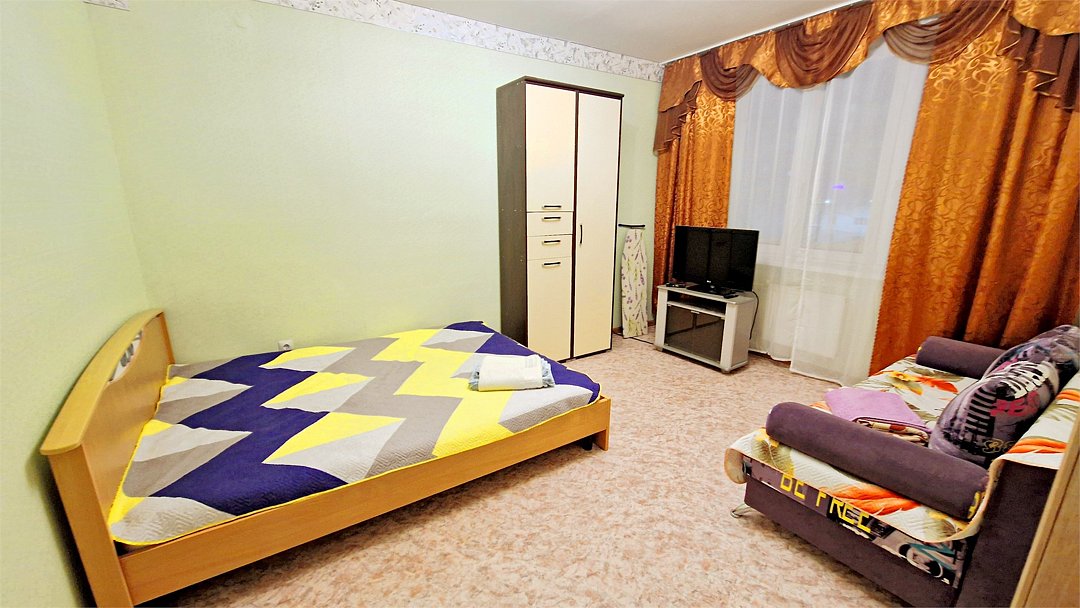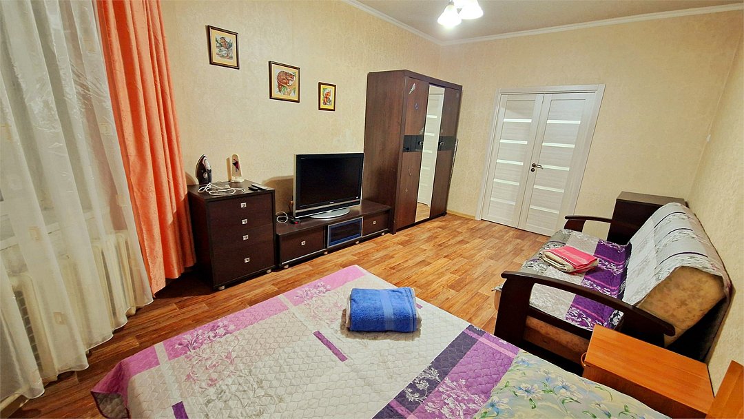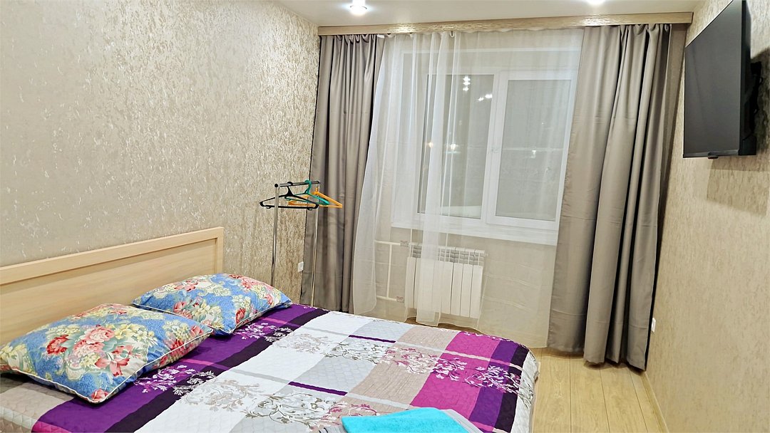 •Находится в ближайшем к аэропорту жилом районе, в 10 минутах ходьбы до центра города. • Остановки, магазины, кафе в шаговой доступности. Удобная транспортная доступность. Много парковочных мест во дворе. В непосредственной близости есть возможность стоянки грузового автотранспорта. • Укомплектован: двуспальной и полутороспальной кроватями, комодом для одежды, напольной вешалками с плечиками, Телевизором, Цифровым ТВ, WiFi, Пуховыми подушками, Одеялами, Хлопковым постельным бельем и махровыми банными полотенцами, Утюгом, Феном, Микроволновкой, Чайником, Посудой и другими кухонными принадлежностями, Мылом, Шампунем, Моющим для посуды, Чаем, Сахаром.Услуги и удобства