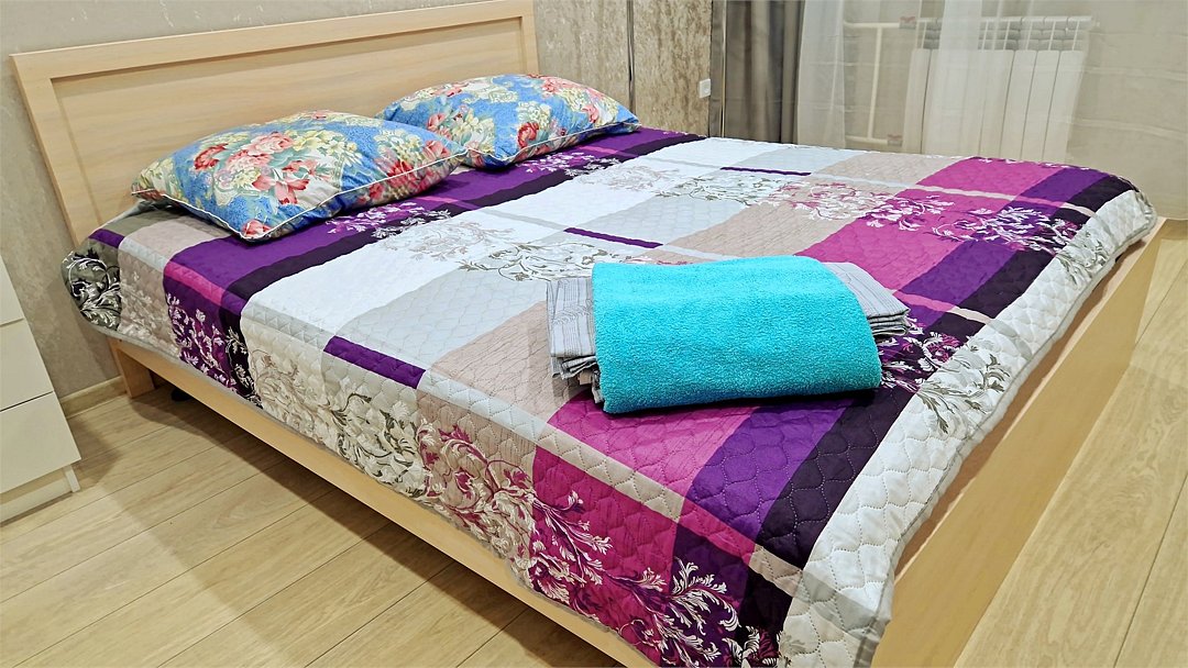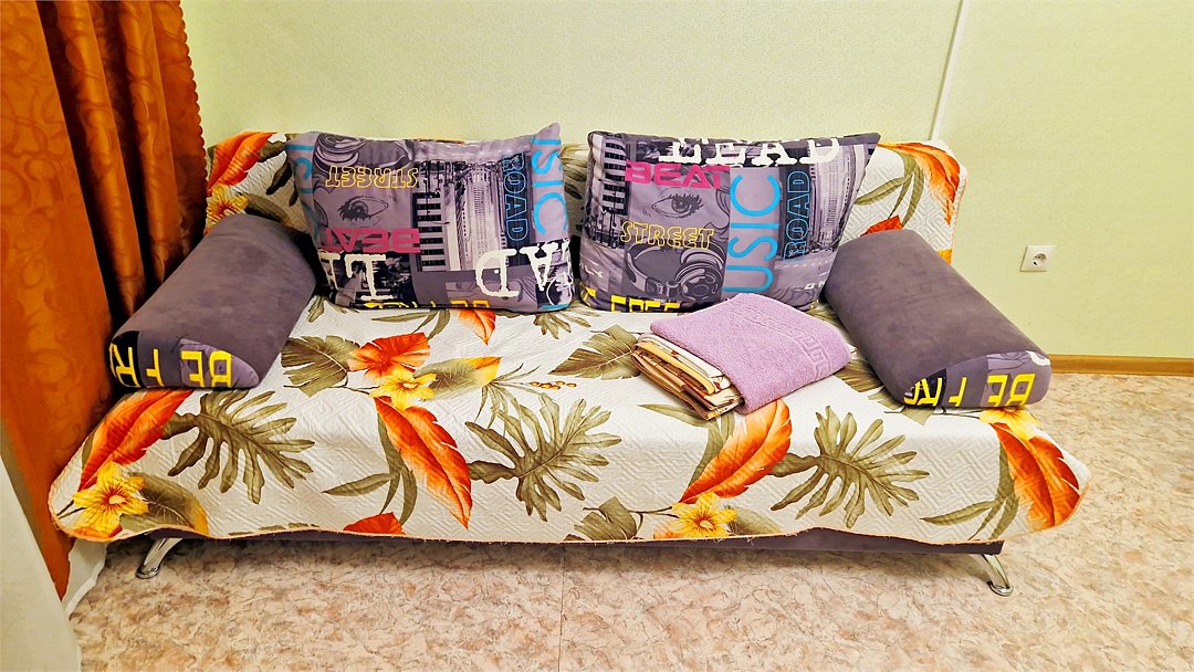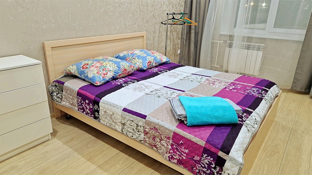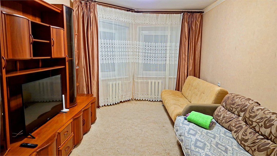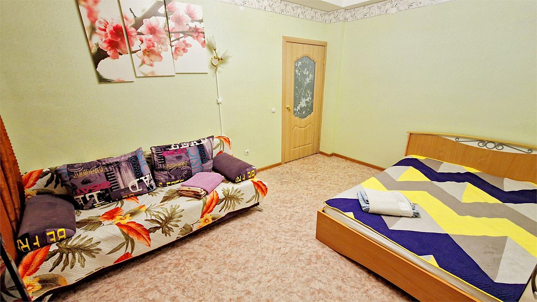 • Квартира находится в ближайшем к аэропорту жилом районе, в 10 минутах ходьбы до центра города. • Остановки, магазины, кафе в шаговой доступности. Удобная транспортная доступность. Много парковочных мест во дворе. В непосредственной близости есть возможность стоянки грузового автотранспорта. • Квартира укомплектована: 1 двуспальная кровать, 1 двуспальный диван, 1 кресло-кровать, Шкаф, Телевизор, Цифровое ТВ, WiFi, Пуховые подушки, Одеяла, Хлопковое постельное белье и махровые банные полотенца, Утюг, Фен, Стиральная машина, Газовая плита, Микроволновка, Чайник, Посуда и другие кухонные принадлежности, Мыло, Шампунь, Моющие для посуды, Чай, Сахар.Услуги и удобства