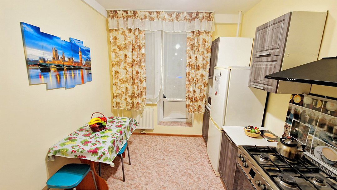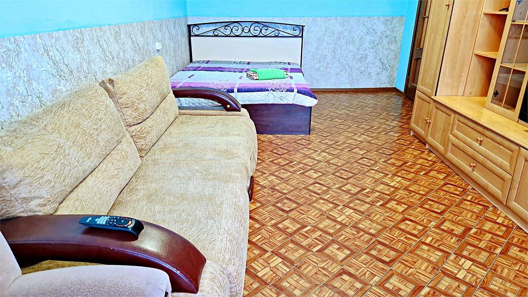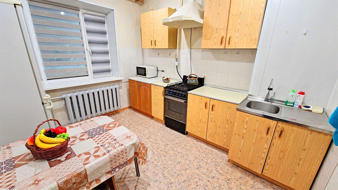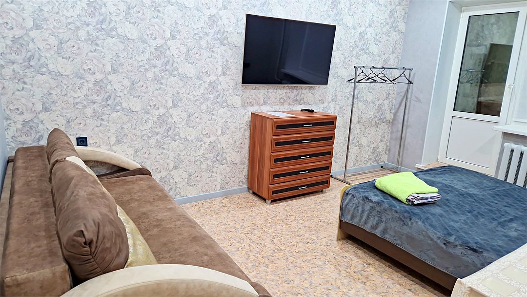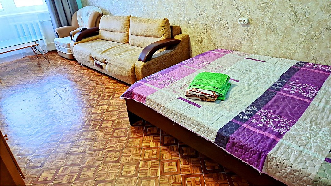 • Квартира находится в ближайшем к аэропорту жилом районе, в 10 минутах ходьбы до центра города. • Остановки, магазины, кафе в шаговой доступности. Удобная транспортная доступность. Много парковочных мест во дворе. В непосредственной близости есть возможность стоянки грузового автотранспорта. • Квартира укомплектована: 1 двуспальная кровать, 1 двуспальный диван, 1 кресло-кровать, Шкаф, Телевизор, Цифровое ТВ, WiFi, Пуховые подушки, Одеяла, Хлопковое постельное белье и махровые банные полотенца, Утюг, Фен, Стиральная машина, Газовая плита, Микроволновка, Чайник, Посуда и другие кухонные принадлежности, Мыло, Шампунь, Моющие для посуды, Чай, Сахар.Услуги и удобства