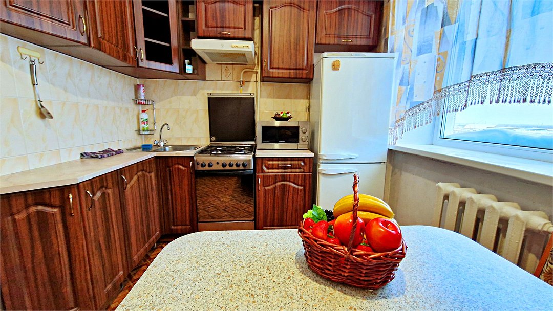 • Квартира находится в ближайшем жилом районе к аэропорту, в 10 минутах ходьбы до центра города и озера Янтарное. • Остановки, магазины, кафе в шаговой доступности. Удобная транспортная доступность. Много парковочных мест во дворе. В непосредственной близости есть возможность стоянки грузового автотранспорта. • Квартира укомплектована: 2 двуспальные кровати, 2 двуспальных дивана, Шкафы, Журнальный столик, 3 телевизора, Цифровое ТВ, WiFi, Пуховые подушки, Одеяла, Хлопковое постельное белье и махровые банные полотенца, Утюг, Фен, Стиральная машина, Газовая плита, Микроволновка, Чайник, Посуда и другие кухонные принадлежности, Мыло, Шампунь, Моющие для посуды, Чай, Сахар. •Услуги и удобства