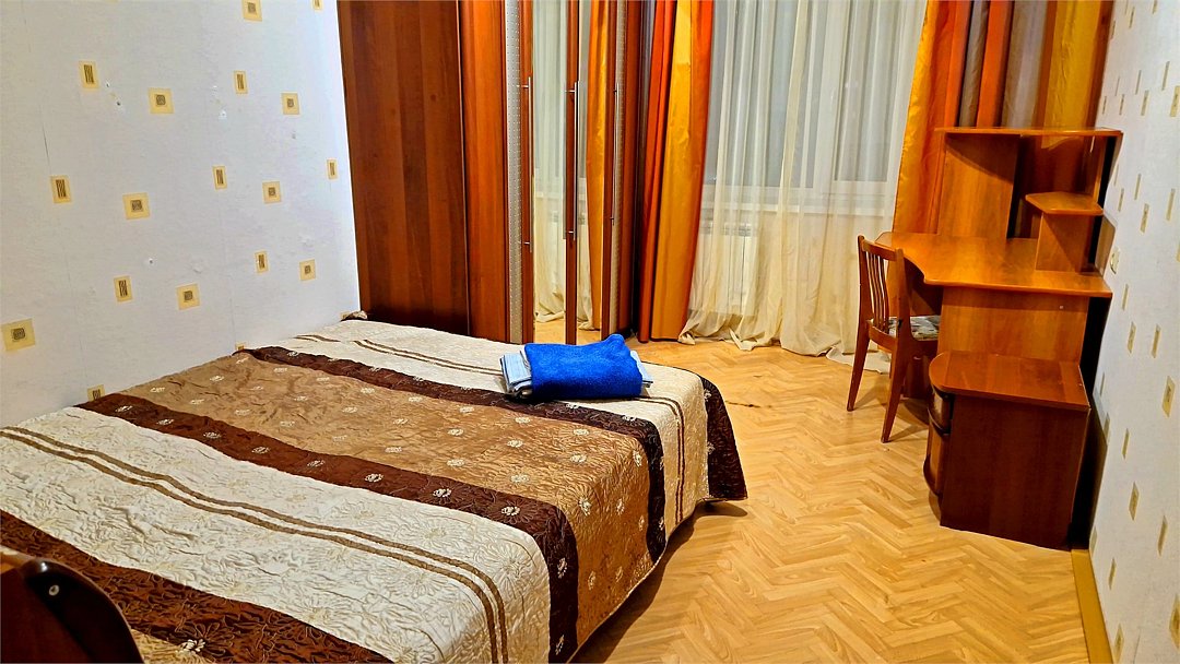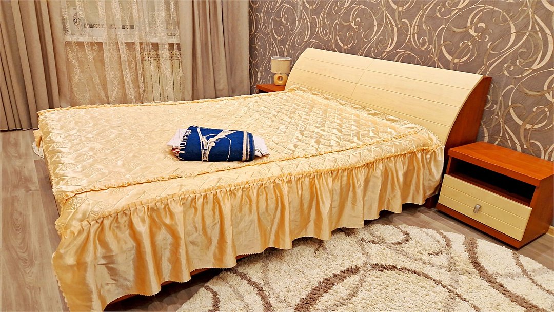 • Квартира находится в ближайшем жилом районе к аэропорту, в пяти минутах пешком до центра города. • Остановки, магазины, кафе в шаговой доступности. Удобная транспортная доступность. Много парковочных мест во дворе. В непосредственной близости есть возможность стоянки грузового автотранспорта. • Квартира укомплектована: Двуспальная кровать, двуспальный диван, кресло-кровать, Шкафы, Журнальный столик, 3 Телевизора, Цифровое ТВ, WiFi, Пуховые подушки, Одеяла, Хлопковое постельное белье и махровые банные полотенца, Утюг, Фен, Стиральная машина, Газовая плита, Микроволновка, Чайник, Посуда и другие кухонные принадлежности, Мыло, Шампунь, Моющие для посуды, Чай, Сахар.Услуги и удобства