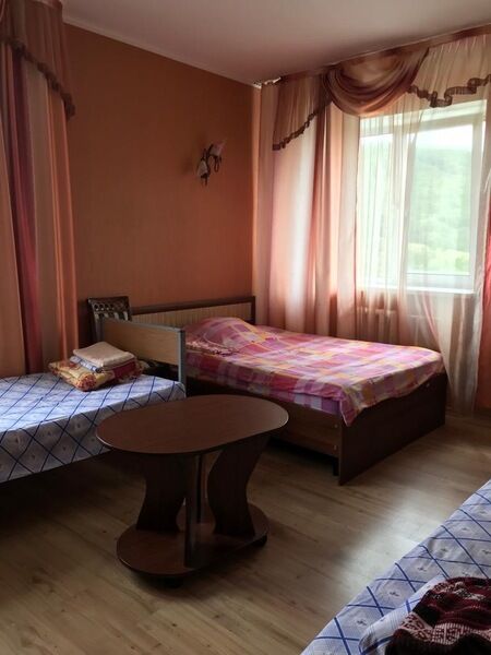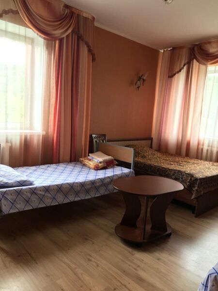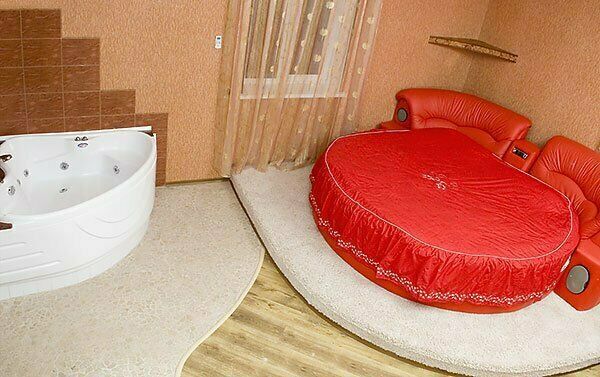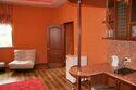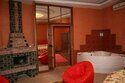 Номера "Люкс" состоят из двух комнат (в одной двухспальная кровать, в другой комнате диван раскладной либо односпальная кровать, при необходимости можно добавить одну кровать) и гостинной, ванна, душевая кабинка, в свадебном (красная кровать) есть камин, кухонная зона: холодильник, стиральная машинка, посуда.