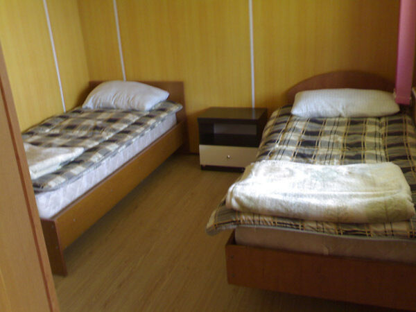 В домике в целом 4 места: 2 раздельные комнаты с 2-мя односпальными кроватями. Туалет и душ с горячей водой общий на две комнаты.