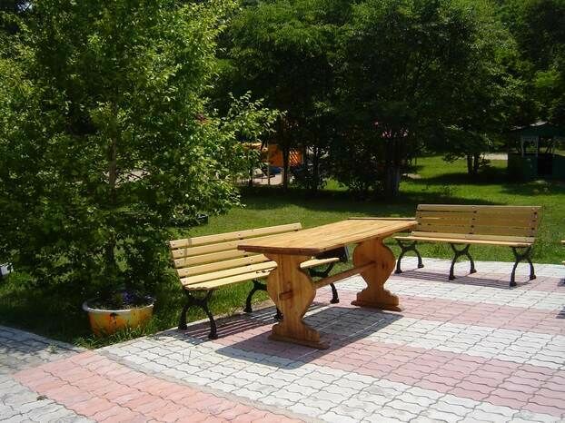 2 деревянных домика с туалетом. В домике две двухместные комнаты с отдельными входами
