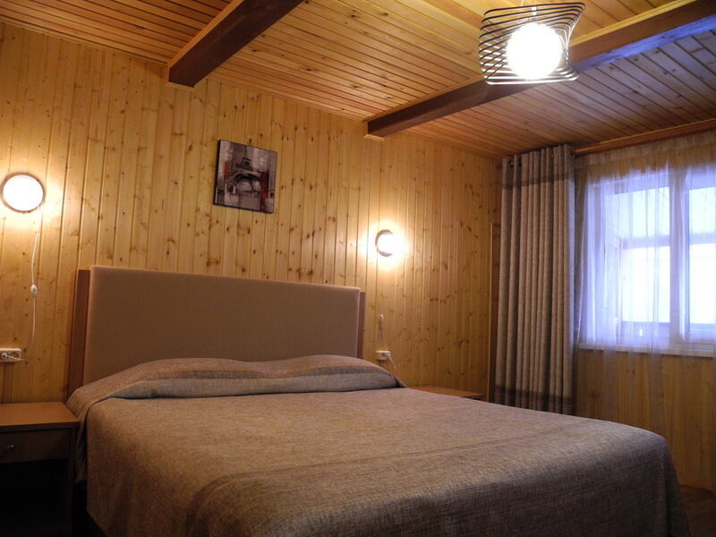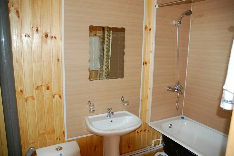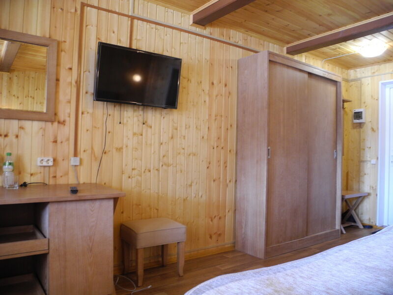 В номере: кровать (двуспальная или две односпальные), холодильник, шкафы, стол, два табурета, зеркало, санузел (ванна, унитаз, умывальник). При желании возможно предоставление дополнительного места для ребёнка.