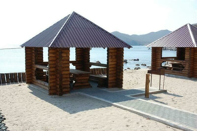 Активный отдыхДостоинстваТерритория и сами номера очень красивые, ухоженные, радуют глаз. Тут повсюду приятно находиться. В кафе вкусная еда, а если хотите приготовить шашлык самостоятельно, там же можно взять шампура. В беседках на пляже можно по вечерам собираться, но из-за их количества и компаний в них очень шумно. Вообще место хорошее.