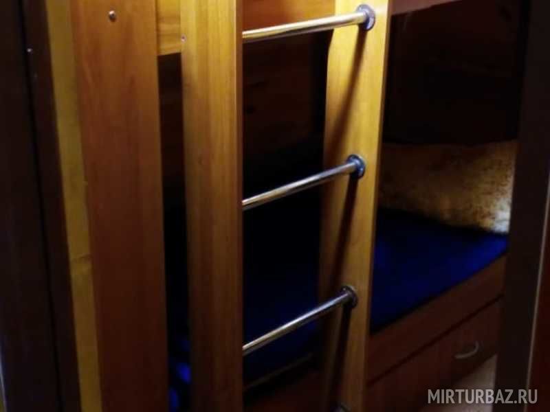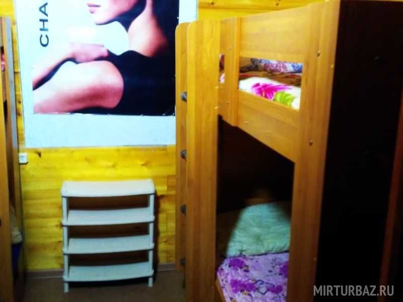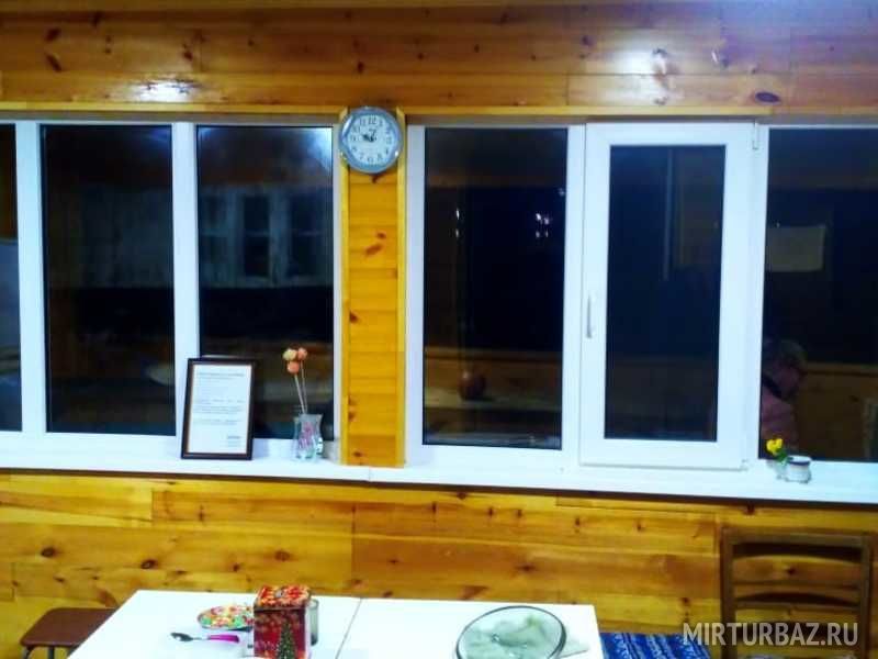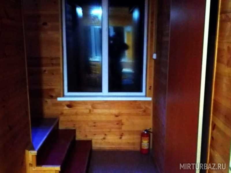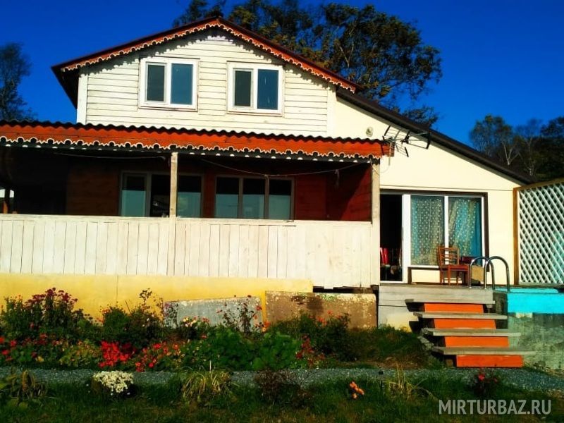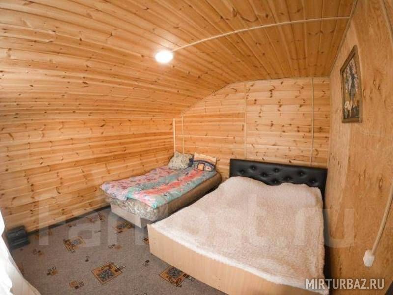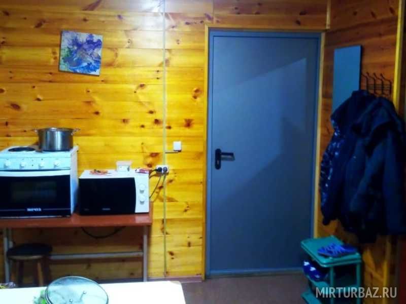 Двухэтажный домик с лестницей внутри, рассчитанный на проживание 10 человек. Имеется холодильник и печь. Удобства в доме-пристройке. Доступен к бронированию с весны по осень.