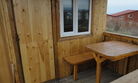 Домики изготовлены из натурального дерева и имеют специфический запах древесины. Вместимость 2-3 человека. Электрофицированы. Пластиковые окна. Оборудованы внутренним и внешним освещением. Розетки. Холодильник. На веранде есть столик и лавочки. Постельное белье выдается.