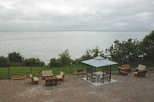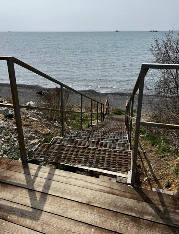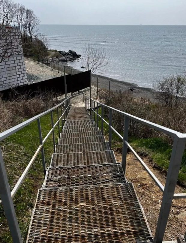 Прямо напротив гостевого дома находится пляж с песчано-галечным покрытием. Благодаря своей удалённости от городского пляжа, он остаётся свободным даже в разгар сезона. Удобный спуск к морю, оборудованный лестницей с широкими ступенями, обеспечивает комфортный доступ для гостей любого возраста. Море у берега неглубокое, что делает его безопасным для семейного отдыха с детьми.