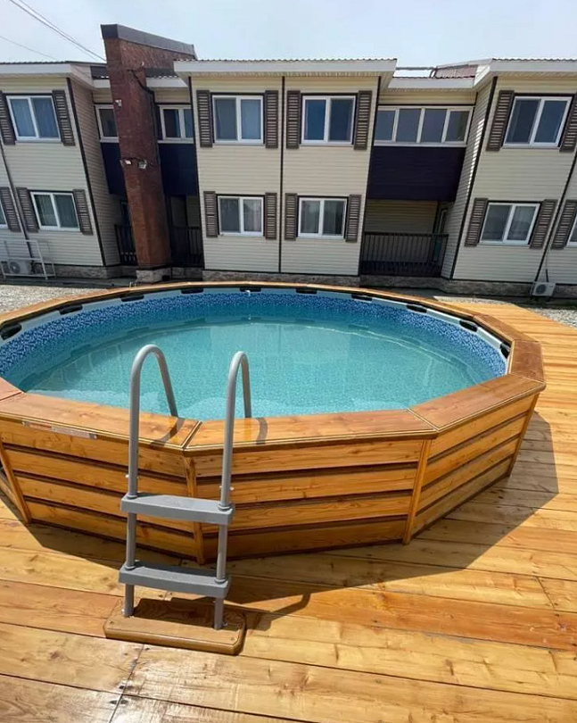 Тип бассейна: открытый бассейн, каркасный бассейнРядом с бассейном: шезлонгиШезлонги и зона отдыха во дворе гостевого дома.