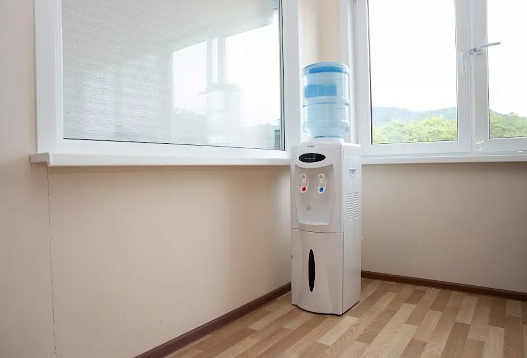 Кулеры с питьевой водой и микроволновые печи в холле этажа.