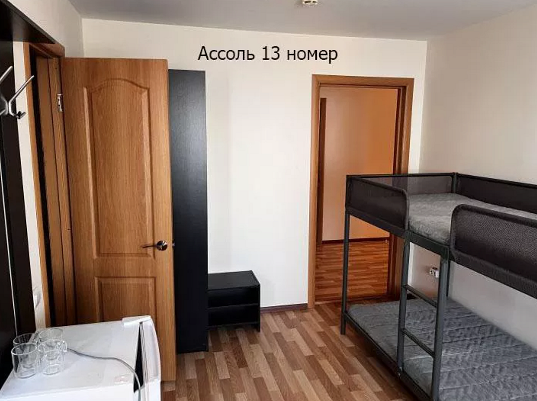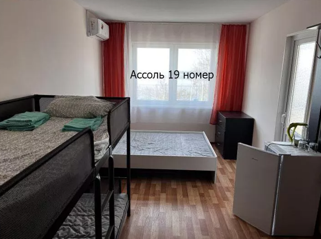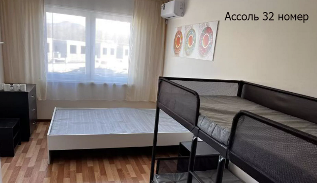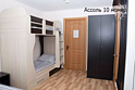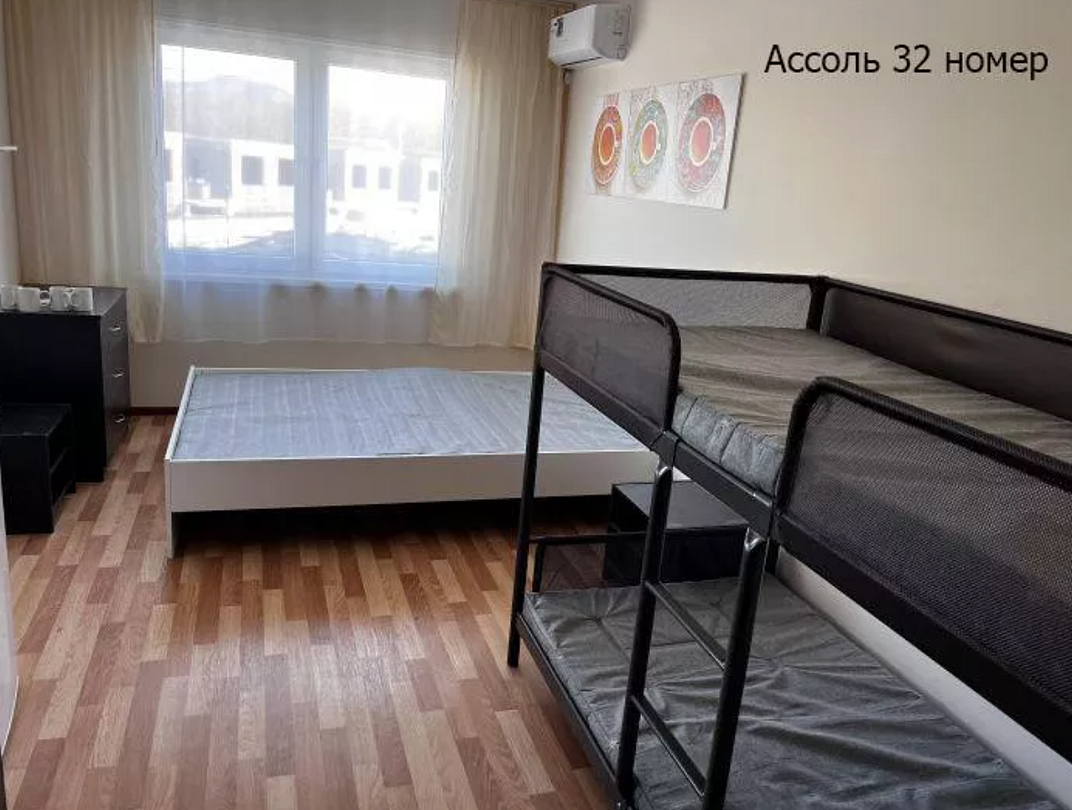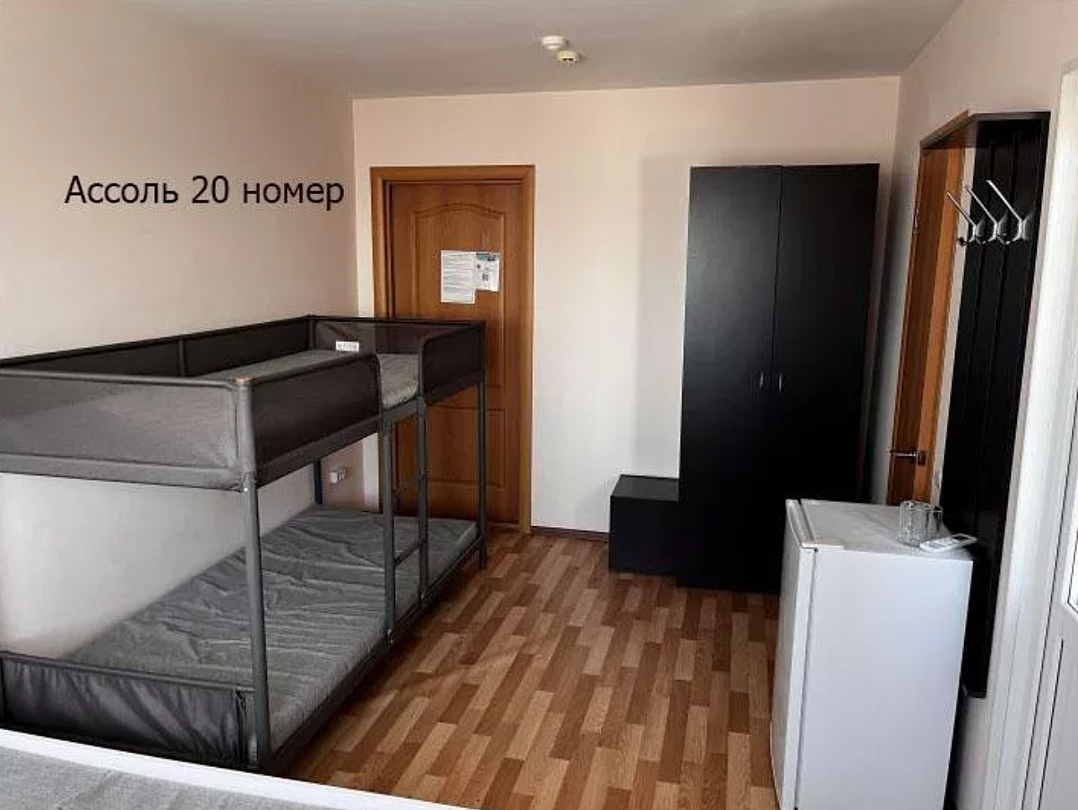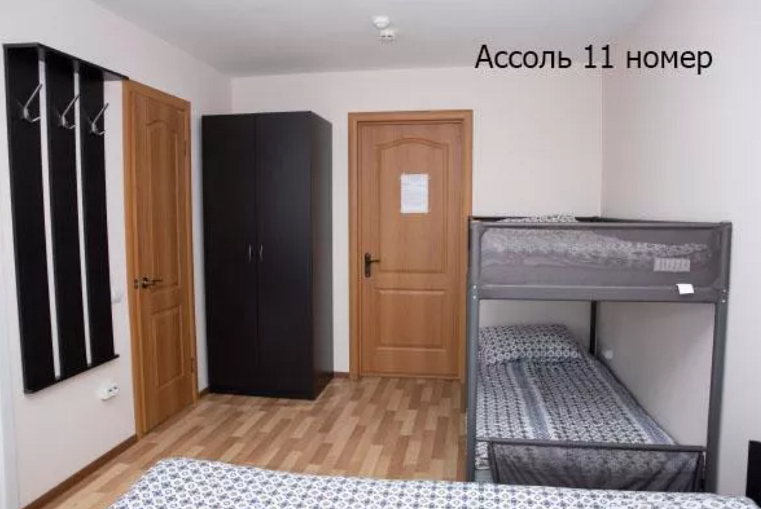 - 2 односпальные кровати (или одна двуспальная), одна двухъярусная кровать, шкаф, 2 тумбочки, 4 комплекта постельного белья, полотенце на каждого и выход на балкон. В каждом номере есть небольшой балкон (индивидуальный или совместный с соседним номером). Сушилка для белья.
