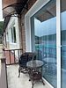 На террасе расположены мангал и садовая мебель, а на балконе обустроена зона для отдыха с удобными креслами и столиками.