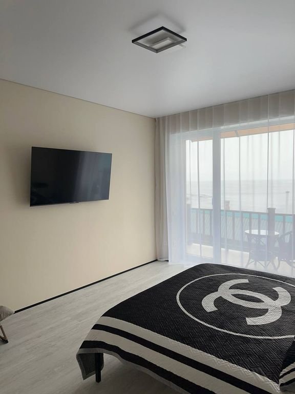 Дом находится всего в десяти минутах от города, расположен на охраняемой территорией с собственным пляжем. В доме установлены телевизоры с функцией Smart TV и имеется доступ в интернет по Wi-Fi. Для комфортного проживания предусмотрены двуспальная кровать, раскладной диван и раскладушка, а также комплект постельного белья.