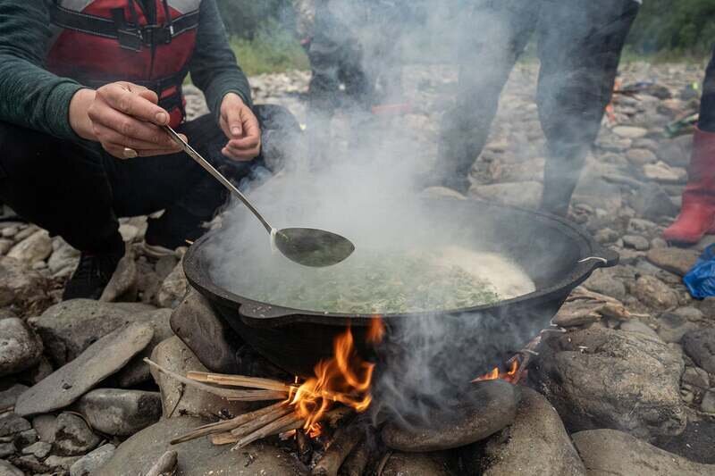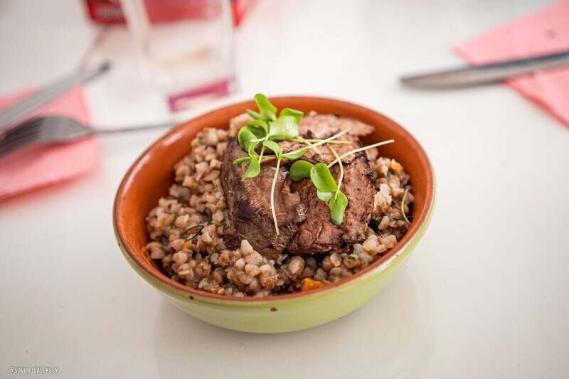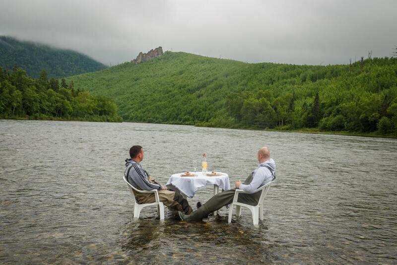 В меню — блюда из натуральных Дальневосточных продуктов (рыба, дичь, дикоросы), приготовленные профессиональным поваром.