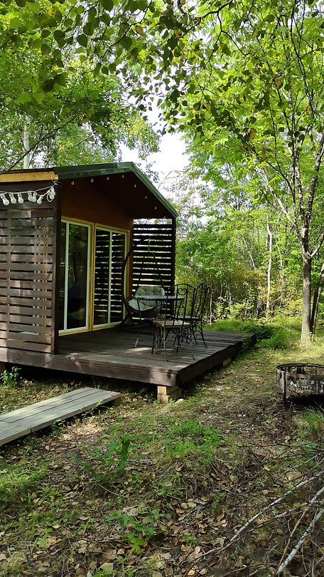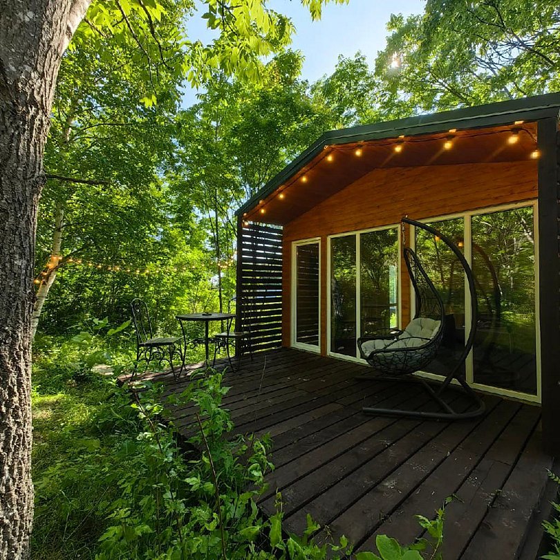 Уютный мини барн, оснащенный всем необхдимым для проживания. Панорамное окно и терраса с видом на лес. Собственная мангальная зона и костровая чаша. Идеальный вариант для романтика