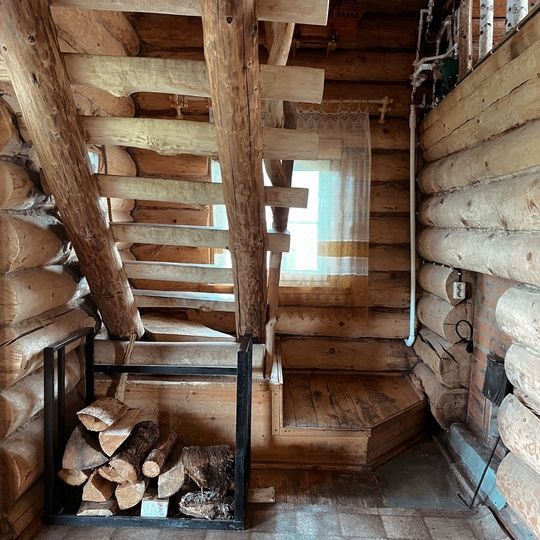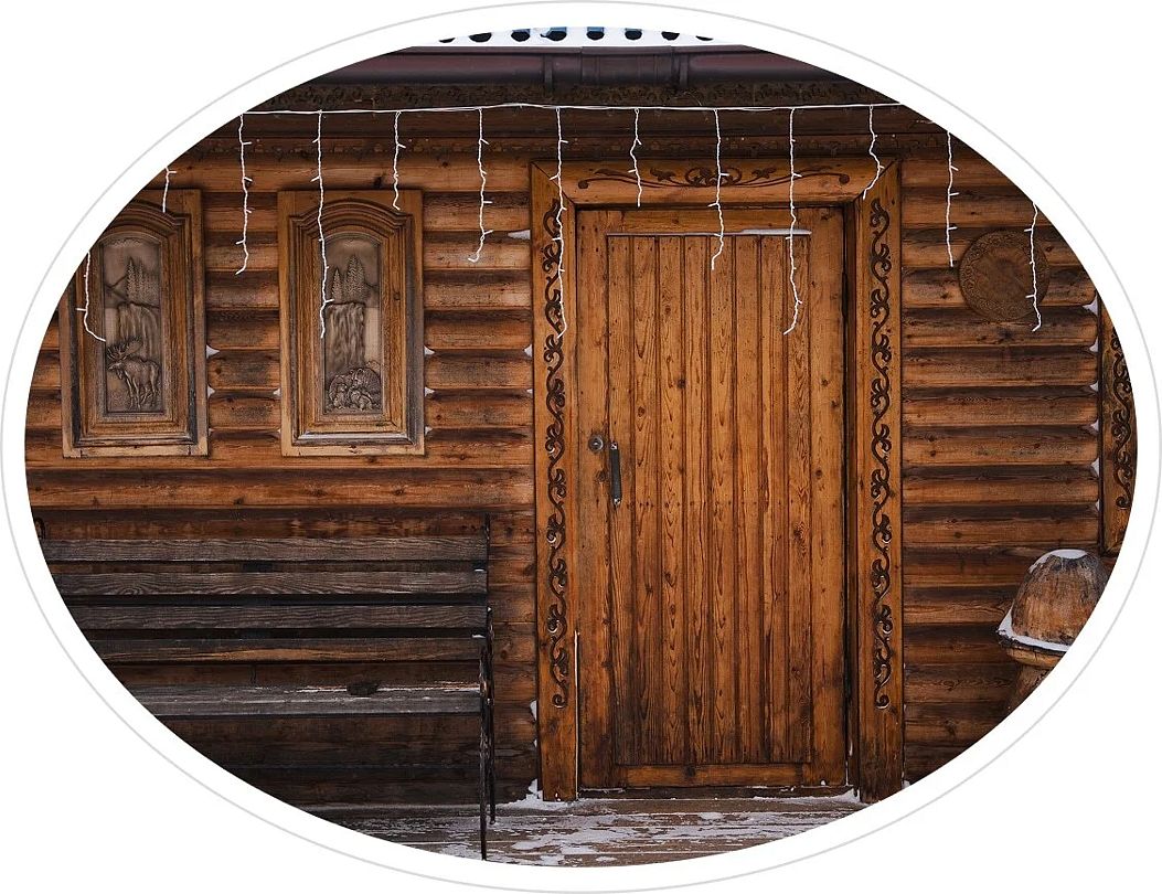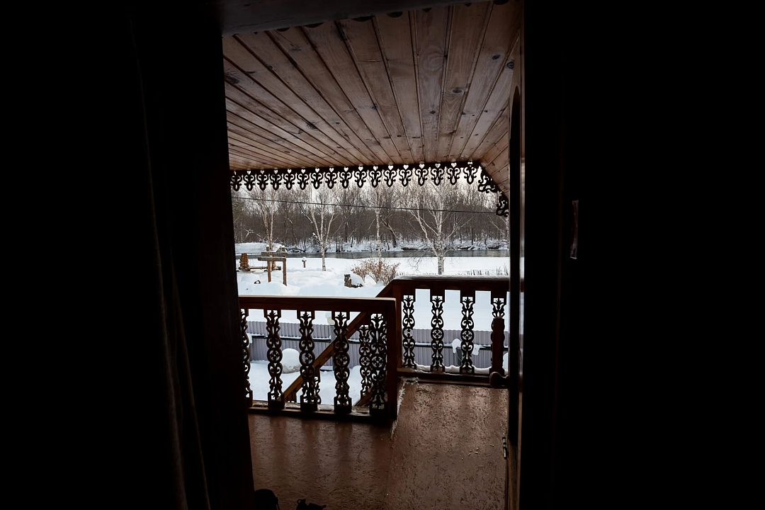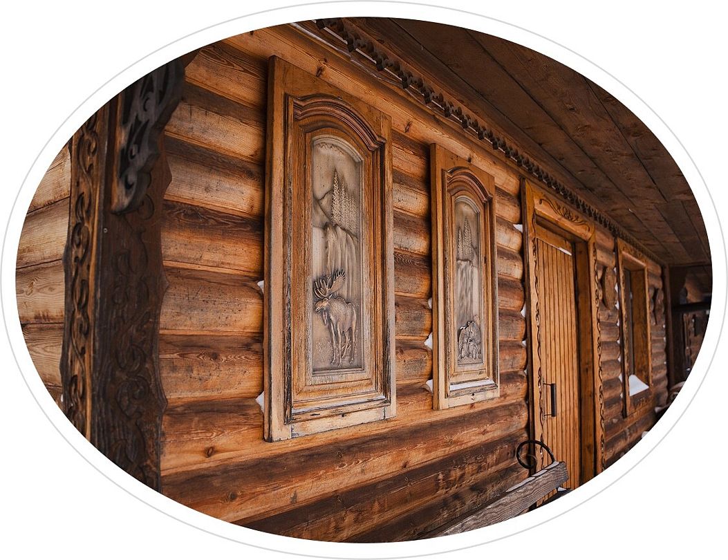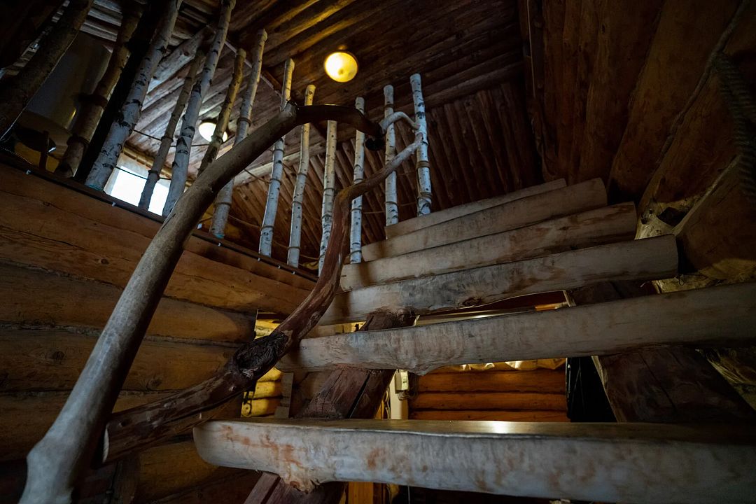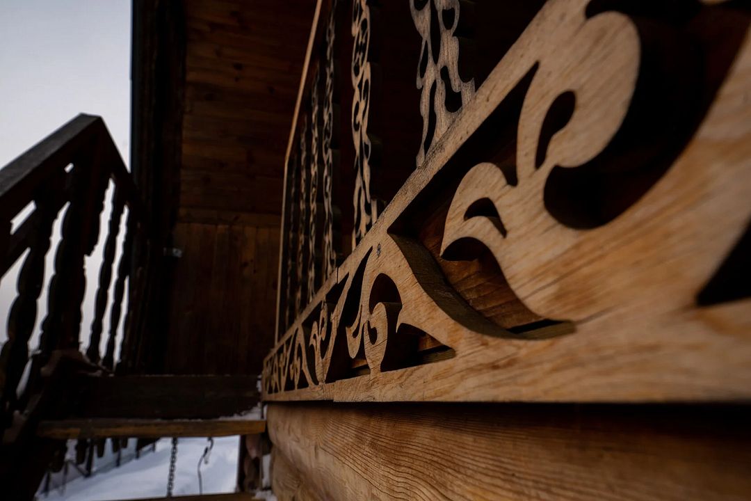 - расположен на втором этаже резного дома;