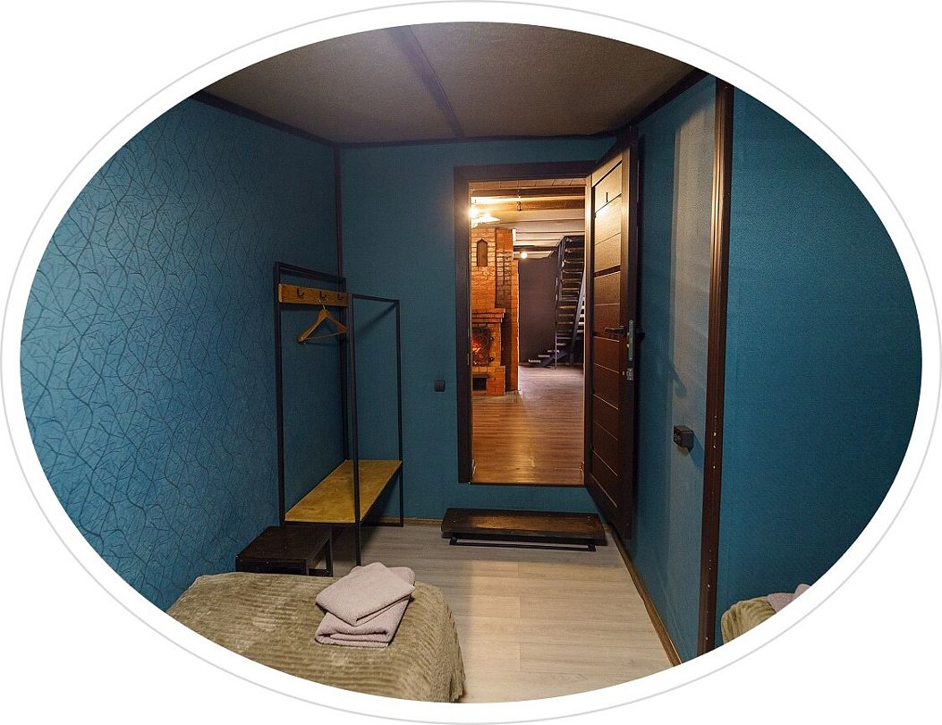 - на 1 этаже спальня с двуспальной кроватью, вешалка для одежды;