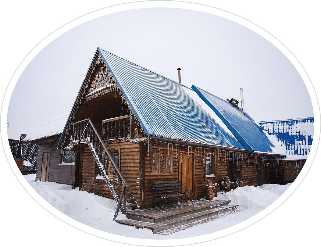 Читать полностьюГостиная — это большой рубленый бревенчатый дом вместимостью до 60 человек. Он сделан из огромных бревен в таёжно-охотничьем стиле, украшен шкурами диких зверей.