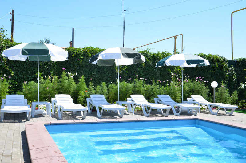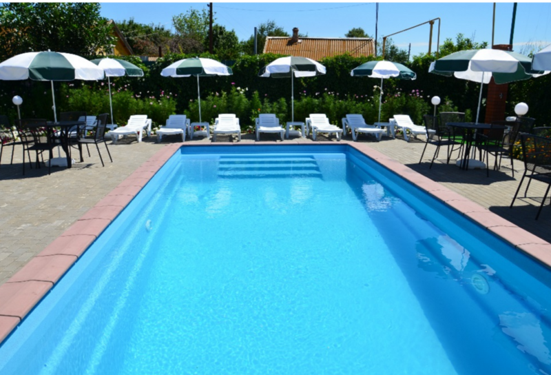 На базе отдыха с бассейном на улице повышенные требования к санитарии. Вода всегда чистая, а запаха хлорки вы не почувствуете, так как используются современные средства очистки. Размеры и разная глубина бассейна позволяют взрослым плавать, а детей учить плаванию.
