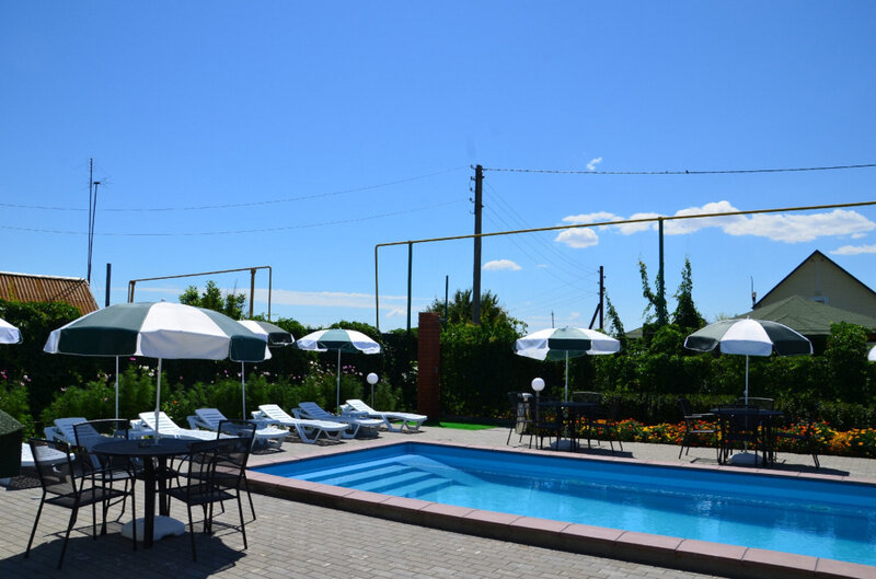 Тип бассейна: открытый бассейнРядом с бассейном: душ, шезлонги, зонтики, бар у бассейнаРазмеры: 4 x 8 мПлощадь: 32 м²Глубина (диапазон): от 125 до 175 смНа базе отдыха с бассейном на улице повышенные требования к санитарии. Вода всегда чистая, а запаха хлорки вы не почувствуете, так как используются современные средства очистки. Размеры и разная глубина бассейна позволяют взрослым плавать, а детей учить плаванию.