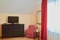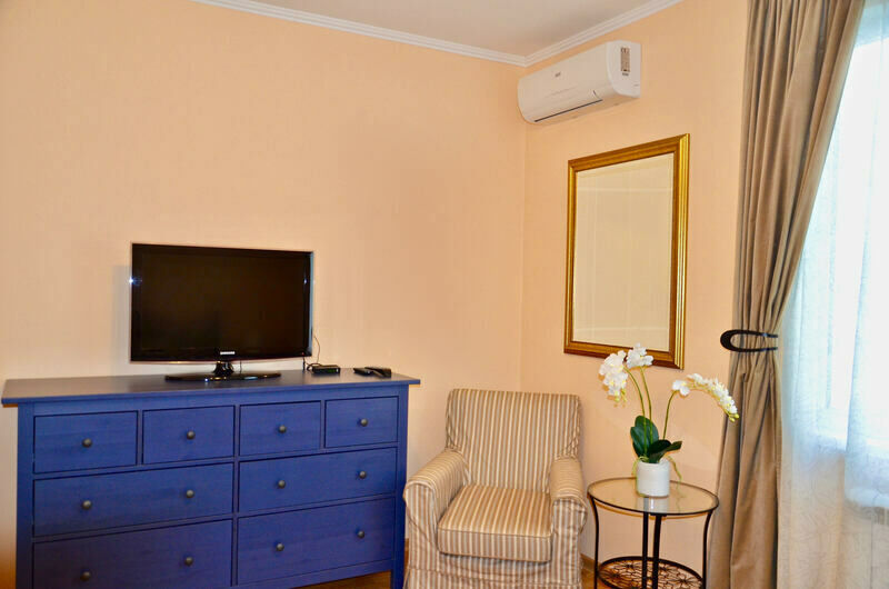 В номере: кондиционер, индивидуальное отопление, горячая, холодная вода, холодильник, телевизор + спутниковое телевидение, сейф, две односпальных кровати или одна двуспальная кровать, постельное белье + комплект полотенец, шкаф, комод, стол + стулья, чайник + набор посуды. Максимальное размещение 2 взрослых + 1 ребенок