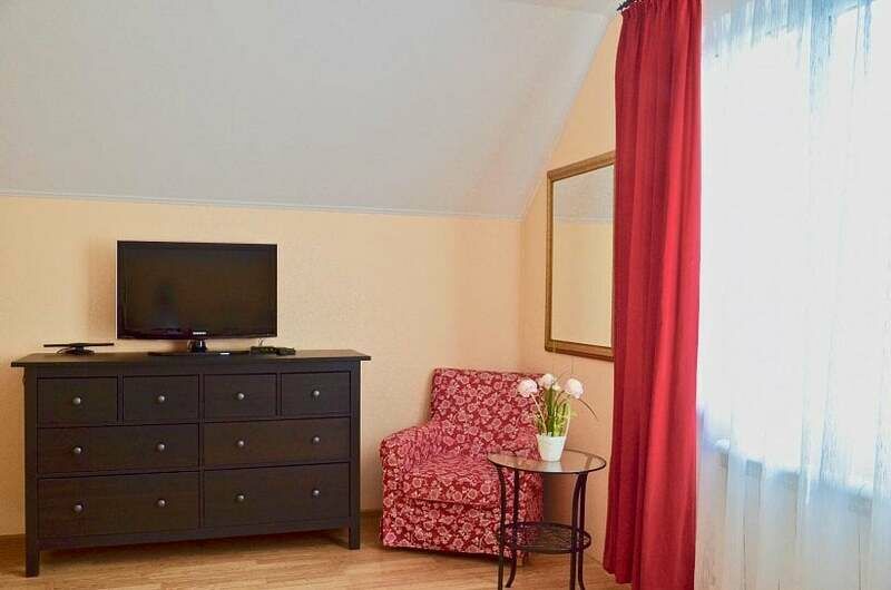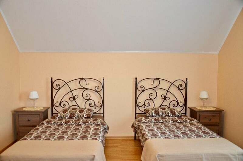 Стандартный двухместный двухкомнатный номер расположенный на первом этаже с отдельным входом. Площадь номера 30 кв.м. В номере две односпальных кровати с ортопедическими матрасами. Удобен для семей с детьми, так как в номере имеется кресло-кровать.