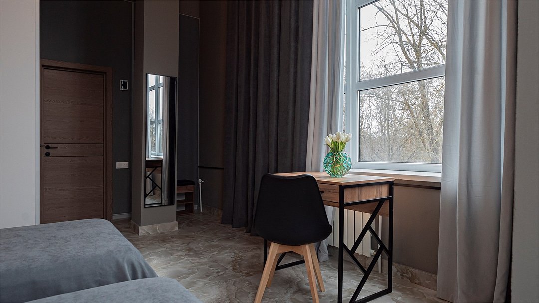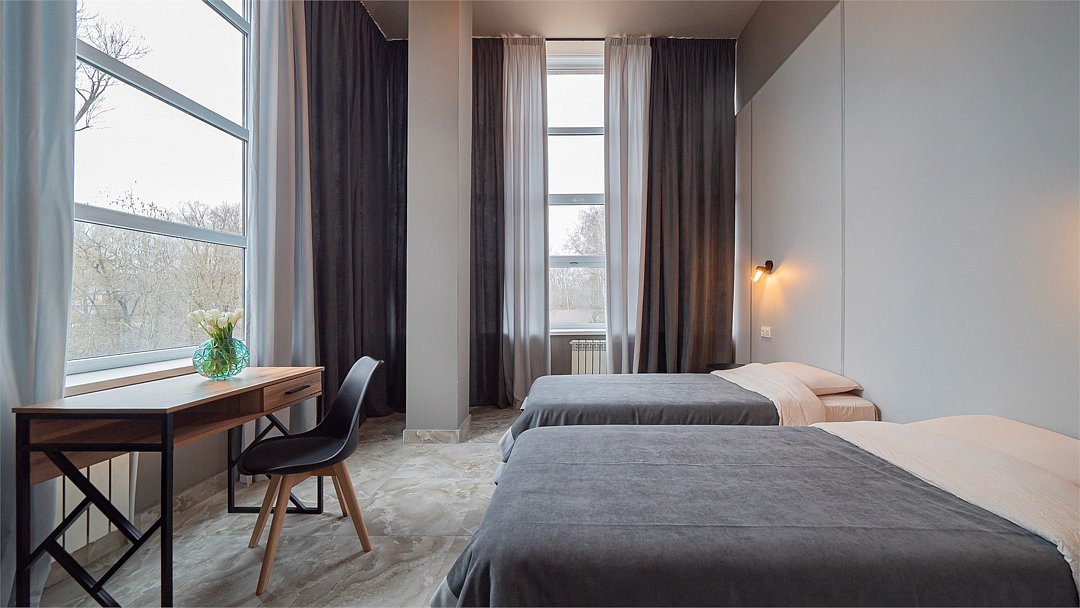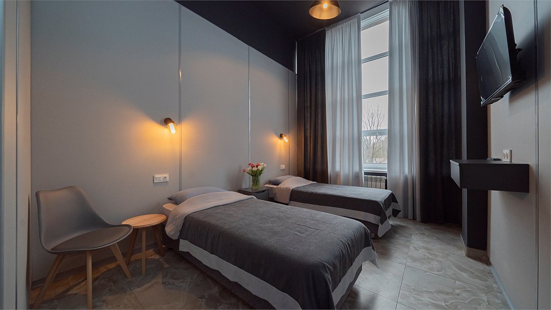 Уютный номер в минималистичном стиле с двумя односпальными кроватями, рабочим местом и современным дизайном. Идеален для отдыха и деловых поездок.Услуги и удобства