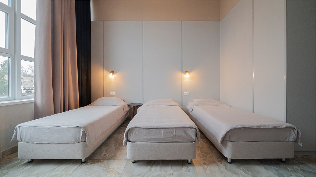 Просторный номер с тремя раздельными кроватями — идеальное решение для друзей или коллег. Удобная мебель, современный интерьер и всё необходимое для комфортного проживания.Услуги и удобства