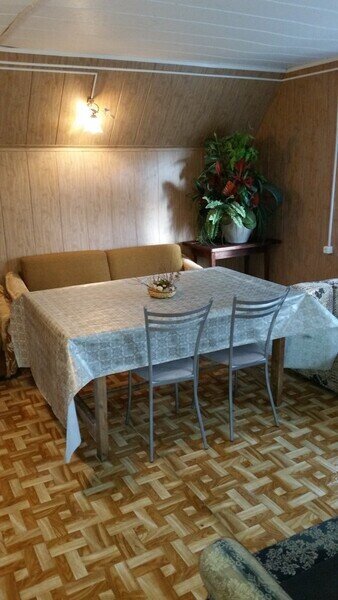 2-х этажный деревянный коттедж находится на небольшом холме, окруженном лесом, с которого открывается прекрасный вид на реку, лес и окружающие поля.