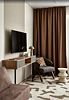 Wi-Fi, система климат-контроля, настольные лампы, фен, система безопасности, электронные замки, ванная комната, халаты, гигиенические средства, косметические средства, кровать «King size», шкаф для одежды, вешалки, журнальный столик, письменный стол, зеркало, письменные принадлежности, чайник, унитаз, питьевая вода, душ, кресло, вид во двор, вид на стадион, стул, сплит-система, внутренний телефон, телевизор с плоским экраном, мини-холодильник, телевизор со Smart TV, гигиенический душ, чайная станция, уборка номера, услуги прачечной (платно), СПА, шапочка для душа, затемняющая штора, зеркало в полный рост, тропический душ, Android TVВ номере
