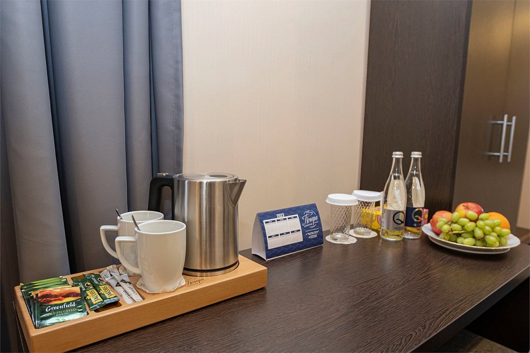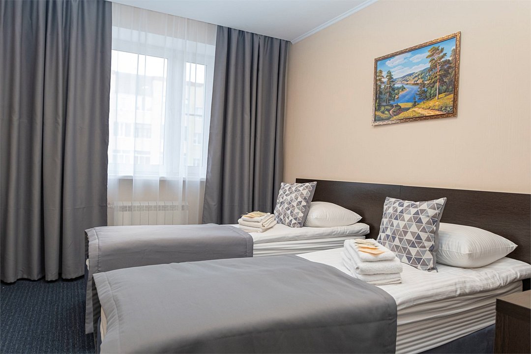 телевизор, Wi-Fi, фен, электронные замки, ванная комната, ванна или душевая кабина, банные принадлежности, банные полотенца, гигиенические средства, две односпальные кровати, ортопедический матрас, вешалки, письменный стол, багажная тумба, зеркало, вид на город, стул, тумба, туалетные средства, туалет, цифровое тв, мини-холодильник, уборка номера, вешалки-плечики, мылоВ номере