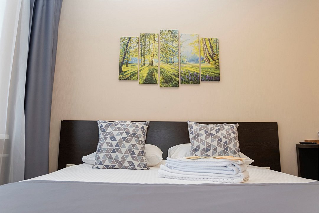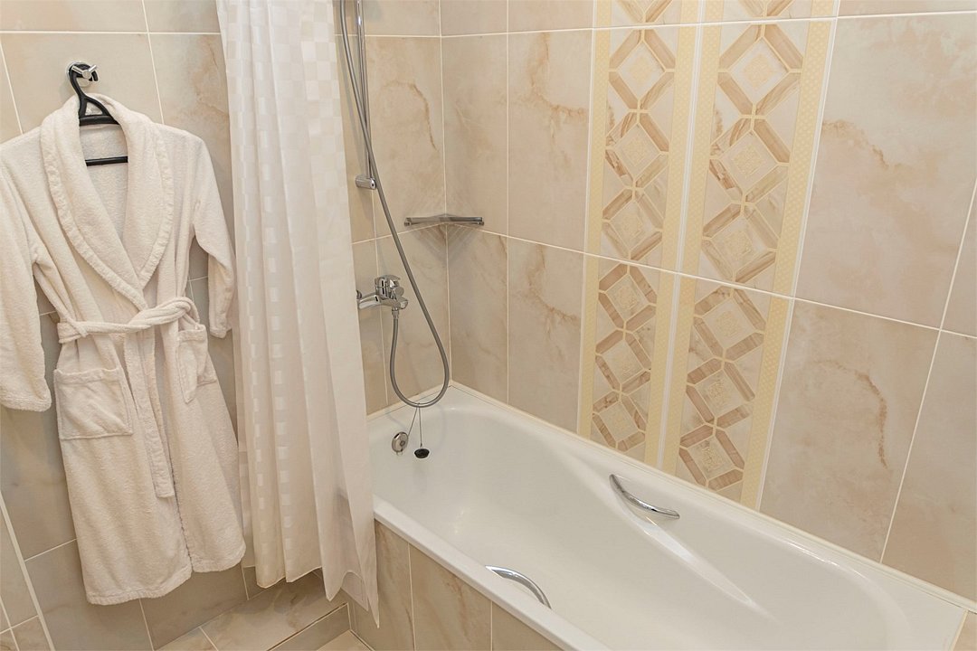 Двуспальная кровать 200*200, телевизор, холодильник, чайник, фен, посуда, халат, тапочки, ванная комната. Площадь 29 кв.м. Завтрак включен.Услуги и удобства
