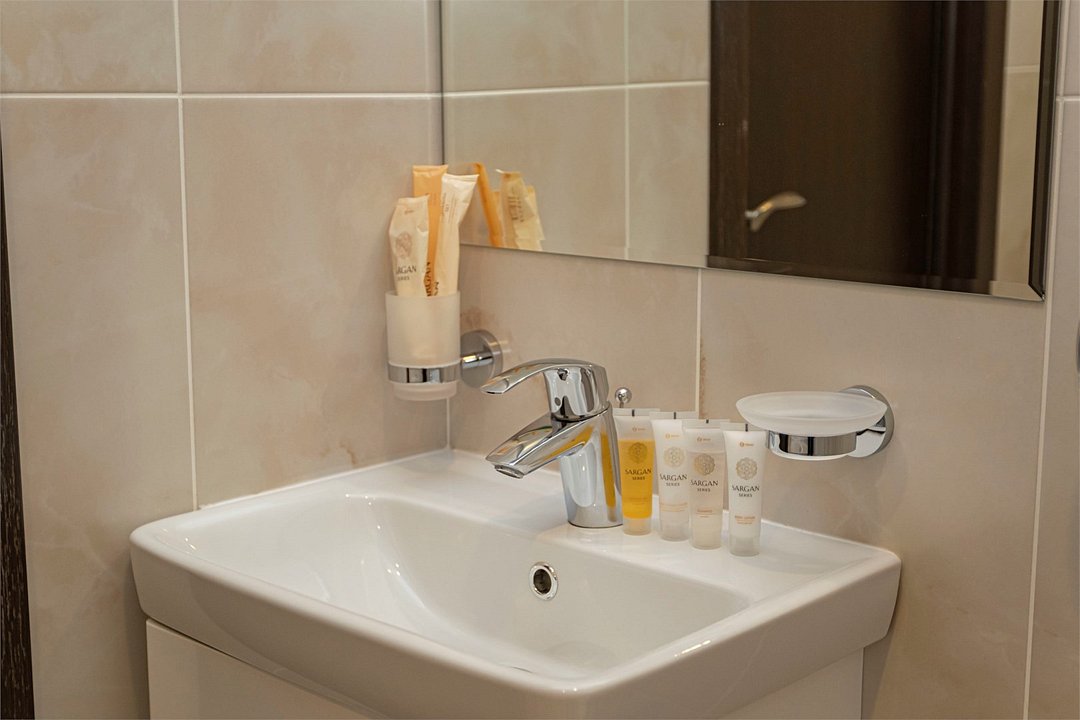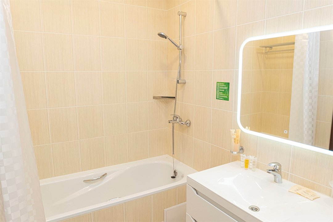 телевизор, Wi-Fi, электронные замки, ванная комната, ванна или душевая кабина, банные принадлежности, халаты, банные полотенца, тапочки, гигиенические средства, кресла, вешалки, письменный стол, багажная тумба, зеркало, вид на город, стул, тумба, туалетные средства, туалет, цифровое тв, мини-холодильник, уборка номера, вешалки-плечики, шапочка для душа, мылоВ номере
