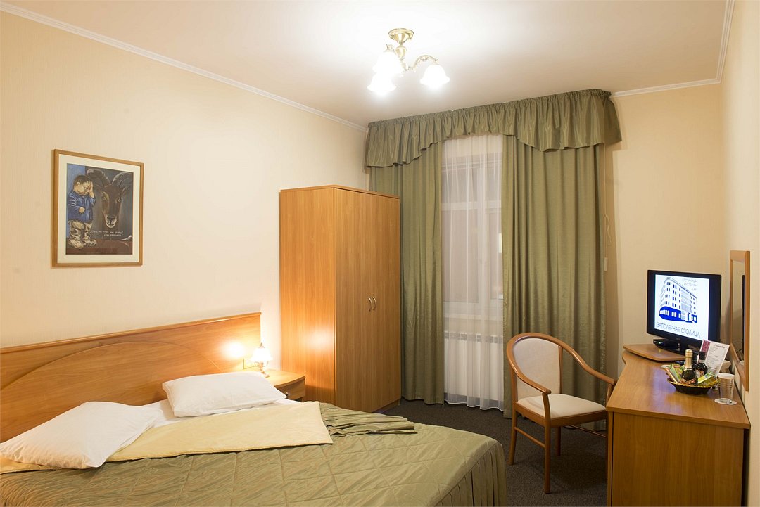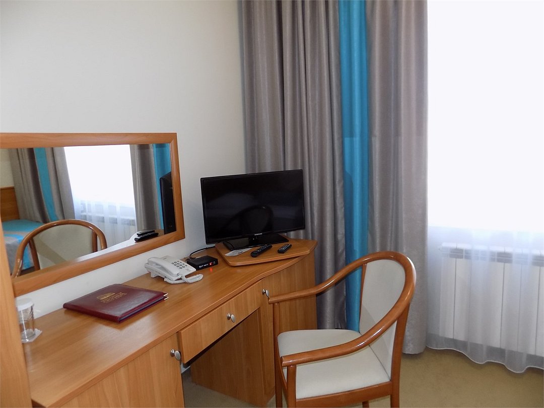 Площадь номера: 19 м². -полутороспальная кровать -телевизор -ванная комната -холодильник -Wi-Fi -платный мини-бар -фумигатор,чайник (по требованию)Услуги и удобства