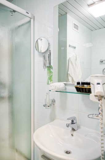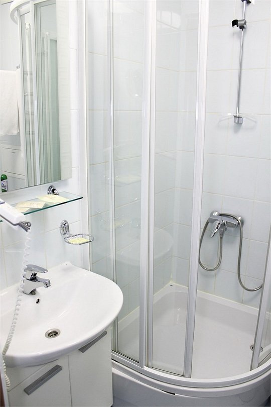 телевизор, Wi-Fi, светильник, фен, электронные замки, душевая кабина, банные полотенца, косметические средства, односпальная кровать, шкаф для одежды, вешалки, багажная тумба, зеркало, унитаз, раковина, кулер на этаже, вид во двор, стул, стол, тумба, цифровое тв, внутренний телефон, мини-холодильникВ номере