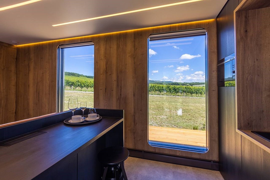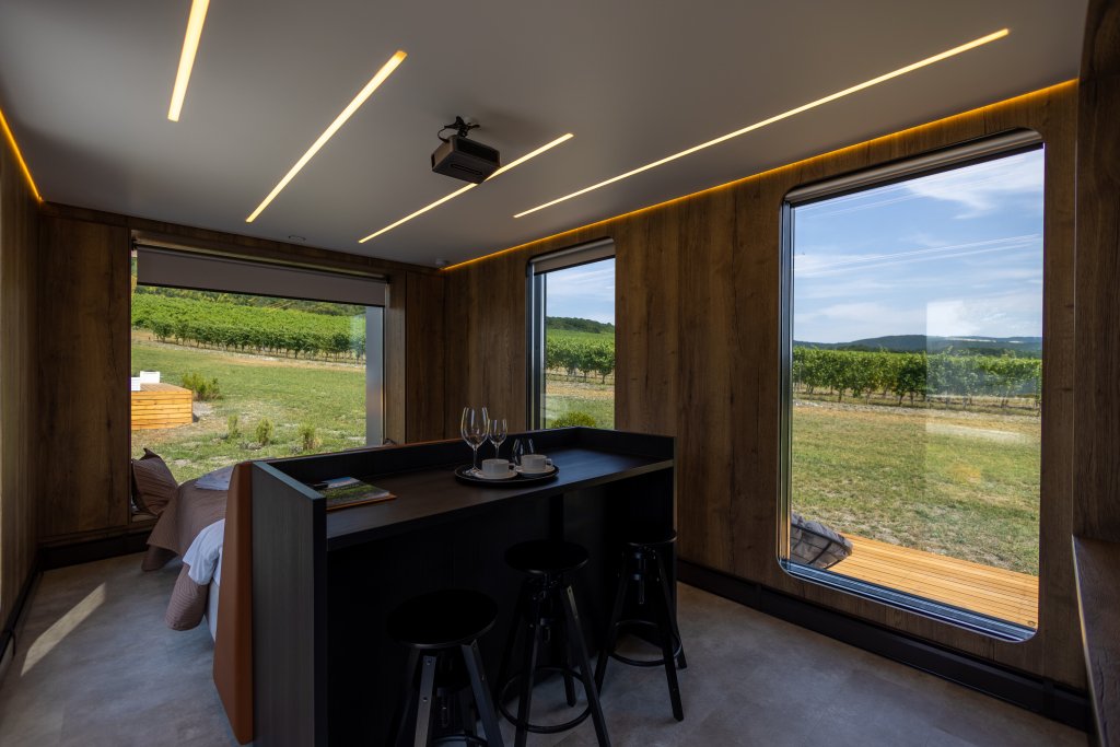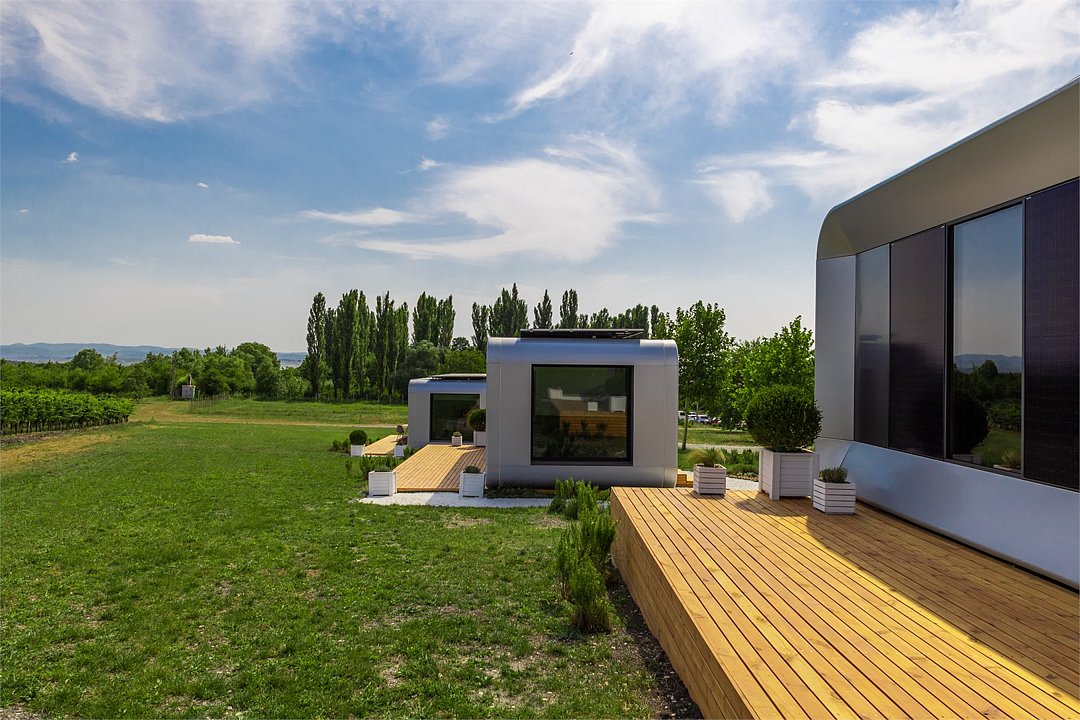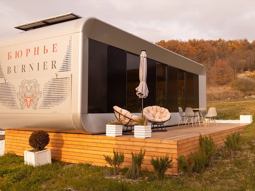 Модульные экодома полностью согласуются с философией «Бюрнье» по органическому виноградарству и бережному отношению к природе: ✓ на 100% обеспечивают себя электричеством за счет солнечных батарей ✓ в современной отделке используются экологичные материалы уровня «премиум» ✓ оборудованы теплым полом, системами кондиционирования, охраны и «умный дом» ✓ оснащены кухонным гарнитуром, гардеробом, кроватью, тропическим душем, шторами «блэкаут», холодильником, СВЧ-печью, плитой, бойлером, проектором и высокоскоростным интернетом (Wi-Fi)Услуги и удобства