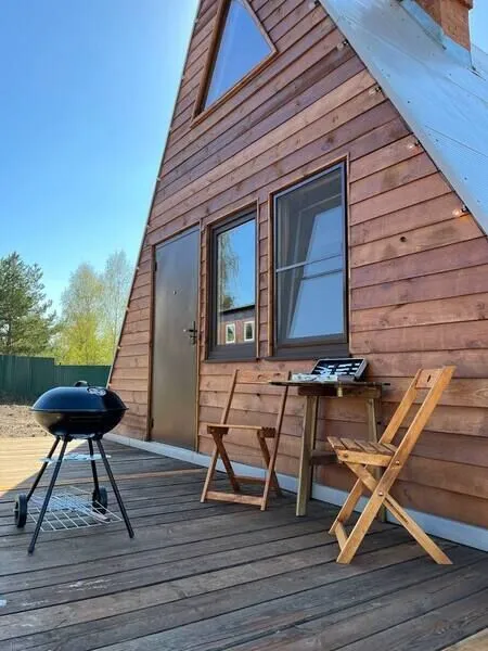 Уютный А-образный домик с панорамным балконом находится на территории живописного парк-отеля. Всего в нескольких минутах ходьбы расположены река Ока и Ефановский затон, что делает это место идеальным для отдыха вблизи природных красот.