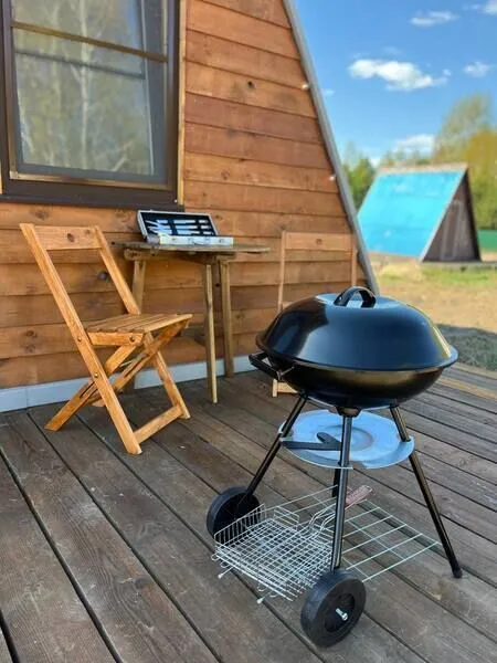 Мы бронировали треугольный домик Монблан. Это совершенно новый дом с дизайнерским ремонтом, мини-кухней, стильной мебелью и сантехникой в ванной комнате. В доме даже есть настоящая огромная кирпичная печь! Рядом терраса с садовой мебелью и грилем. Было приятно там посидеть и пожарить шашлык.