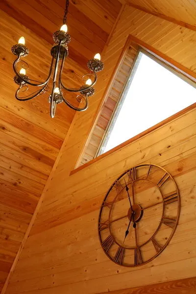 Внутреннее пространство дома занимает три этажа. На первых двух этажах расположены две просторные спальни с двуспальными кроватями, а на мансардном этаже — две дополнительные односпальные кровати. Кроме того, в домике есть полностью оборудованная кухня и собственная ванная комната, обеспечивающие гостям максимум комфорта и независимости.